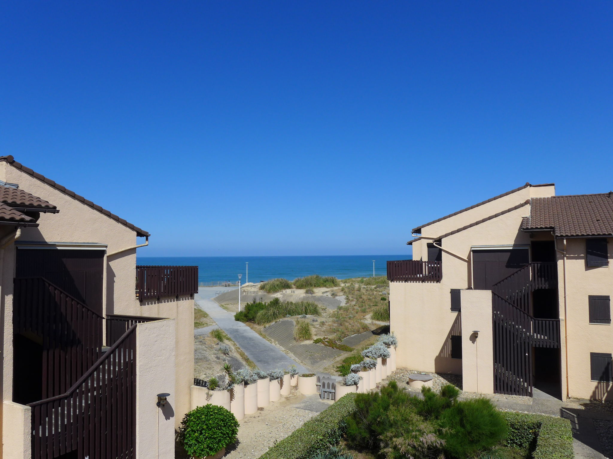 Apartment block "Les Maisons de l'Océan", 3 storeys. 500 m from the centre, 45 m from the sea, 45 m from the beach. Parking space or garage only for small to medium-sized cars. Shop 500 m, supermarket 600 m, restaurant, bakery, bicycle rental 500 m, bus stop "Salle l'Escoure Océan" 900 m. Golf course (18 hole) 4 km, surf school 100 m, tennis 2 km, riding stable 15 km. Please note: Additional accommodations can be booked.