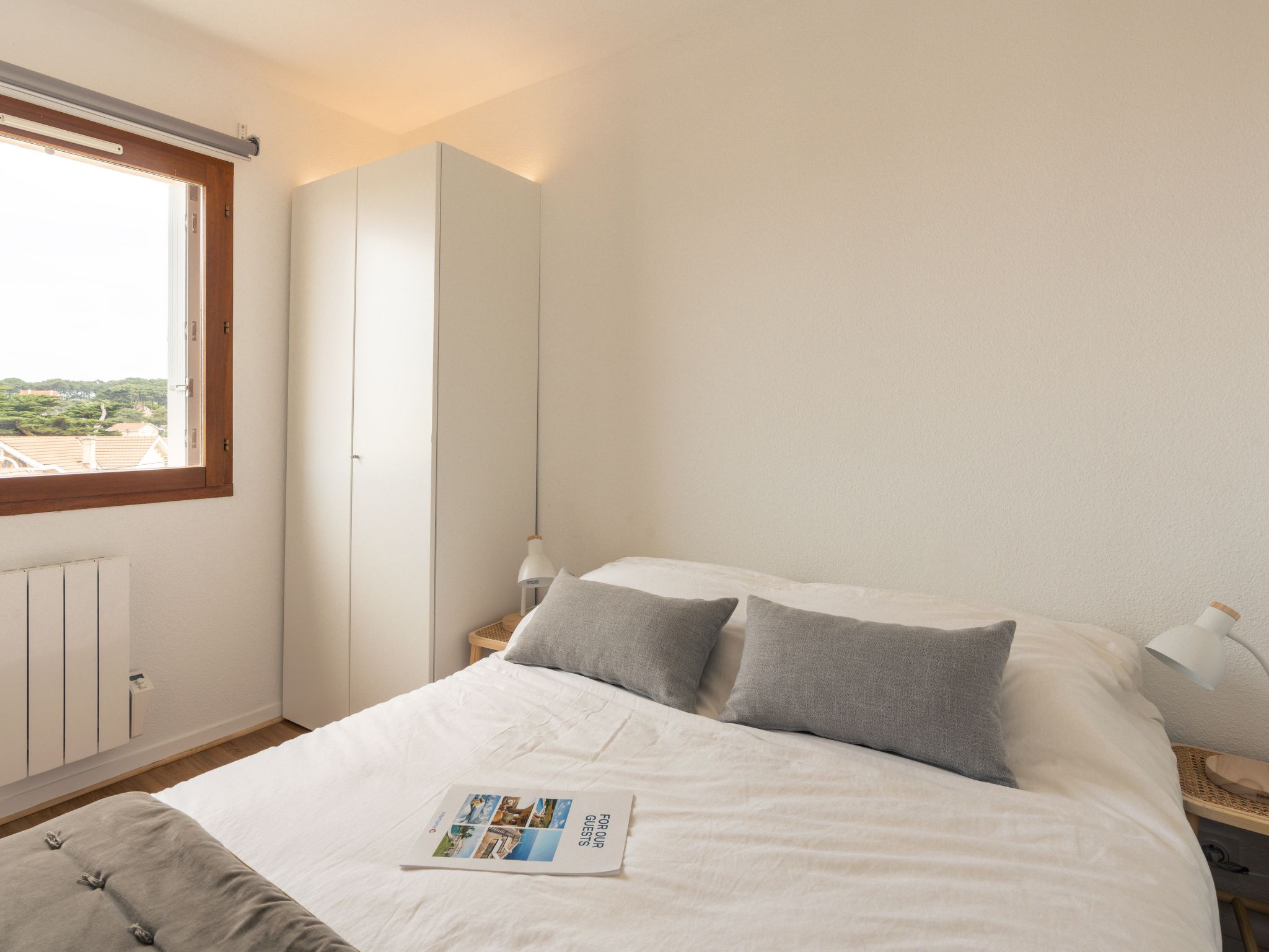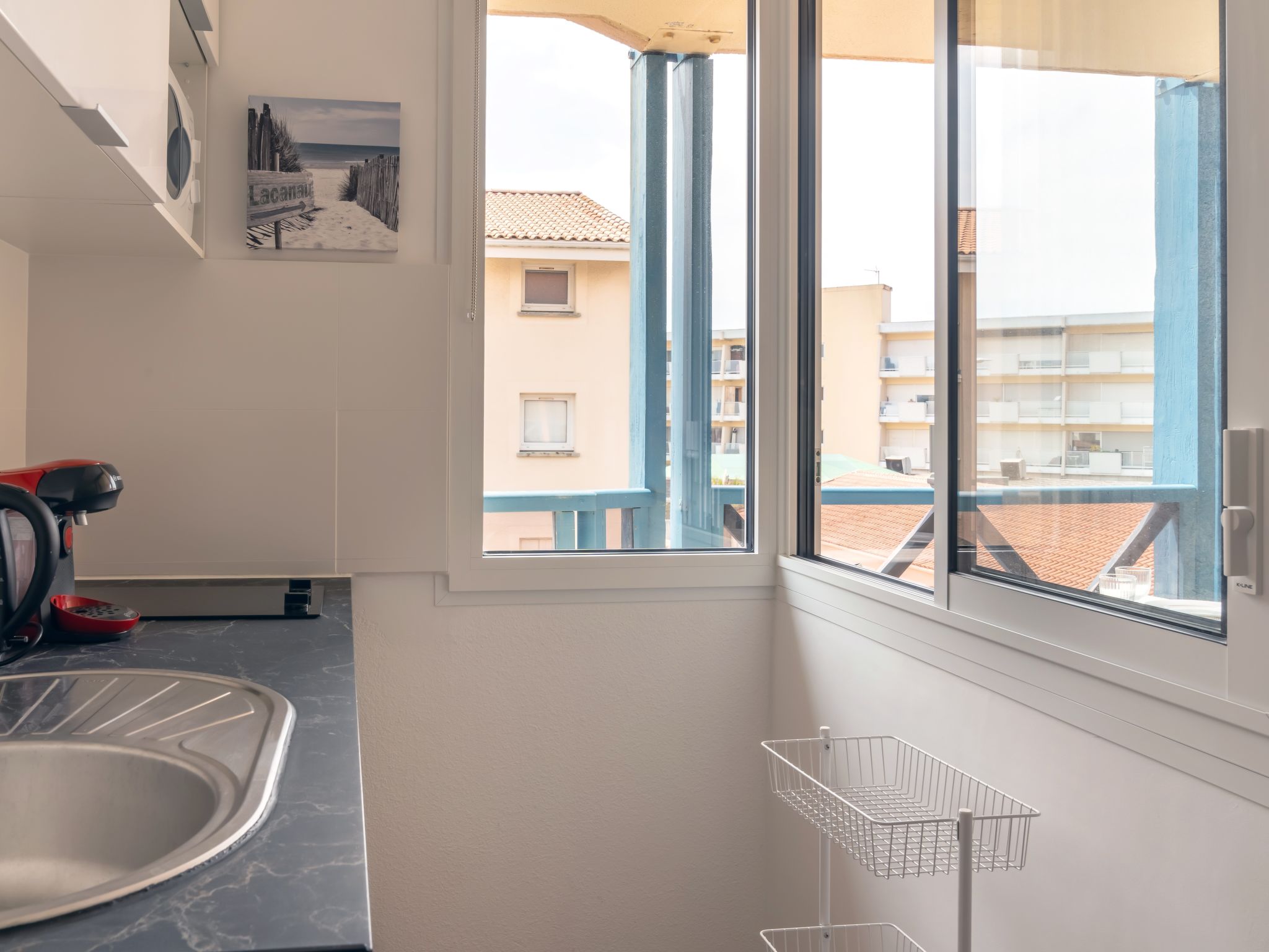 Lacanau Océan: Residence "Les Hélianthes", 3 storeys. In the centre of Lacanau-Océan, in a central, busy position, 100 m from the sea, 6 km from the lake, 100 m from the beach. In the complex: lift. Shop, supermarket 100 m, restaurant 10 m, bar 20 m, bicycle rental 50 m. Golf course (18 hole) 4 km, surf school 100 m, tennis 3 km, riding stable 4 km, cycle lane 200 m. Nearby attractions: Bordeaux 60 km, Saint Emilion 85 km, Dune du Pyla 80 km. Hiking paths: Vélodyssée 500 m. Please note: entertainment in the season.