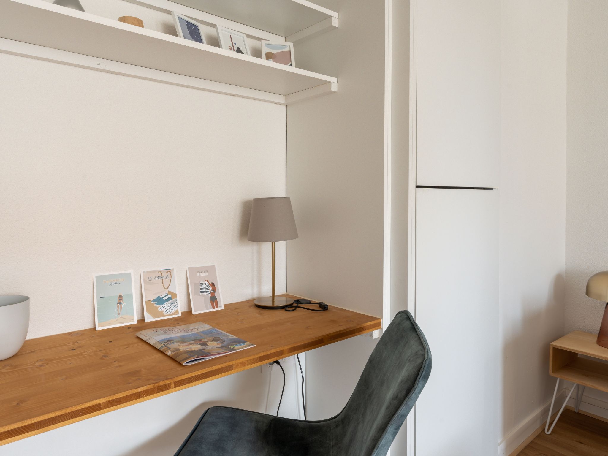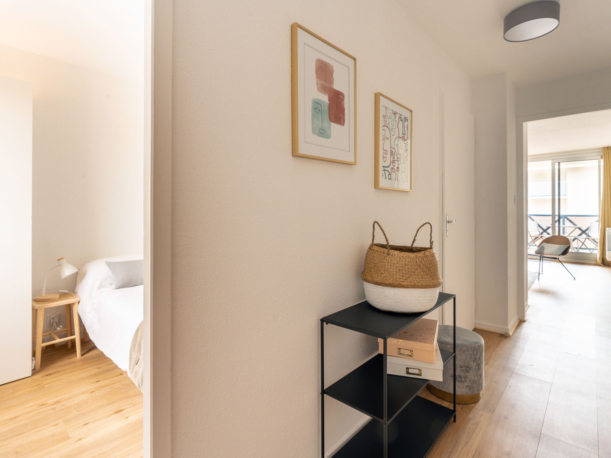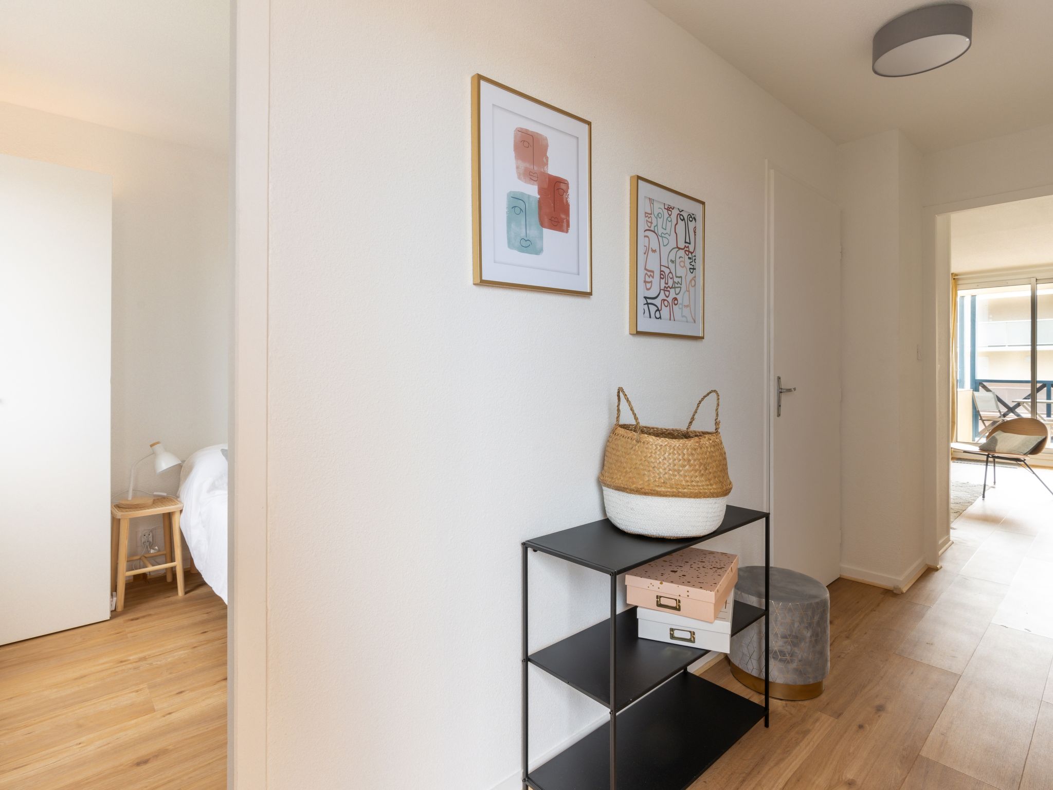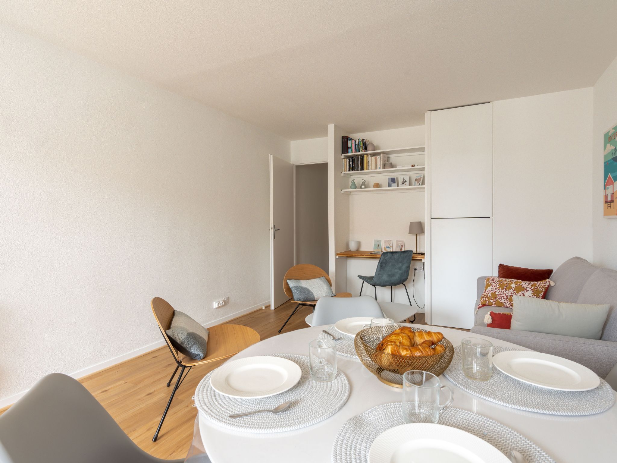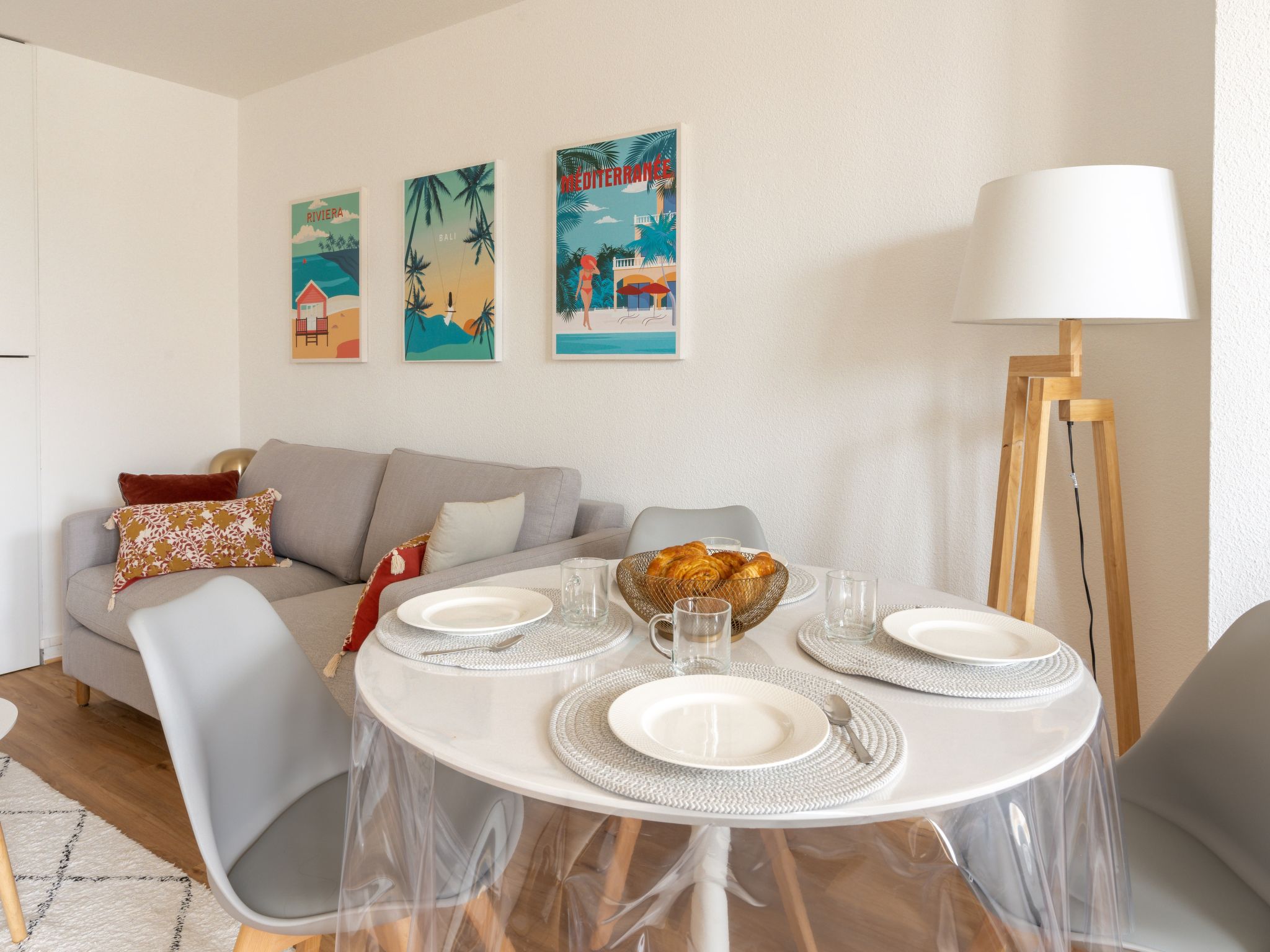 2-room apartment 34 m2 on 2nd floor. Renovated in 2021, beautiful furnishings: living/dining room with 1 double sofabed (140 cm, length 190 cm). Exit to the balcony. 1 room with 1 french bed (140 cm, length 190 cm). Open kitchen (dishwasher, 2 ceramic glass hob hotplates, kettle, microwave, electric coffee machine, Capsules for coffee machine (Tassimo) extra). Shower/WC. Heating. Balcony 5 m2, west facing position. Balcony furniture. Facilities: Internet (WiFi, extra). Reserved parking space n 13. Please note: non-smokers only. Smoke alarm. Offer by a private individual according to Art. 155, IV of CGI.