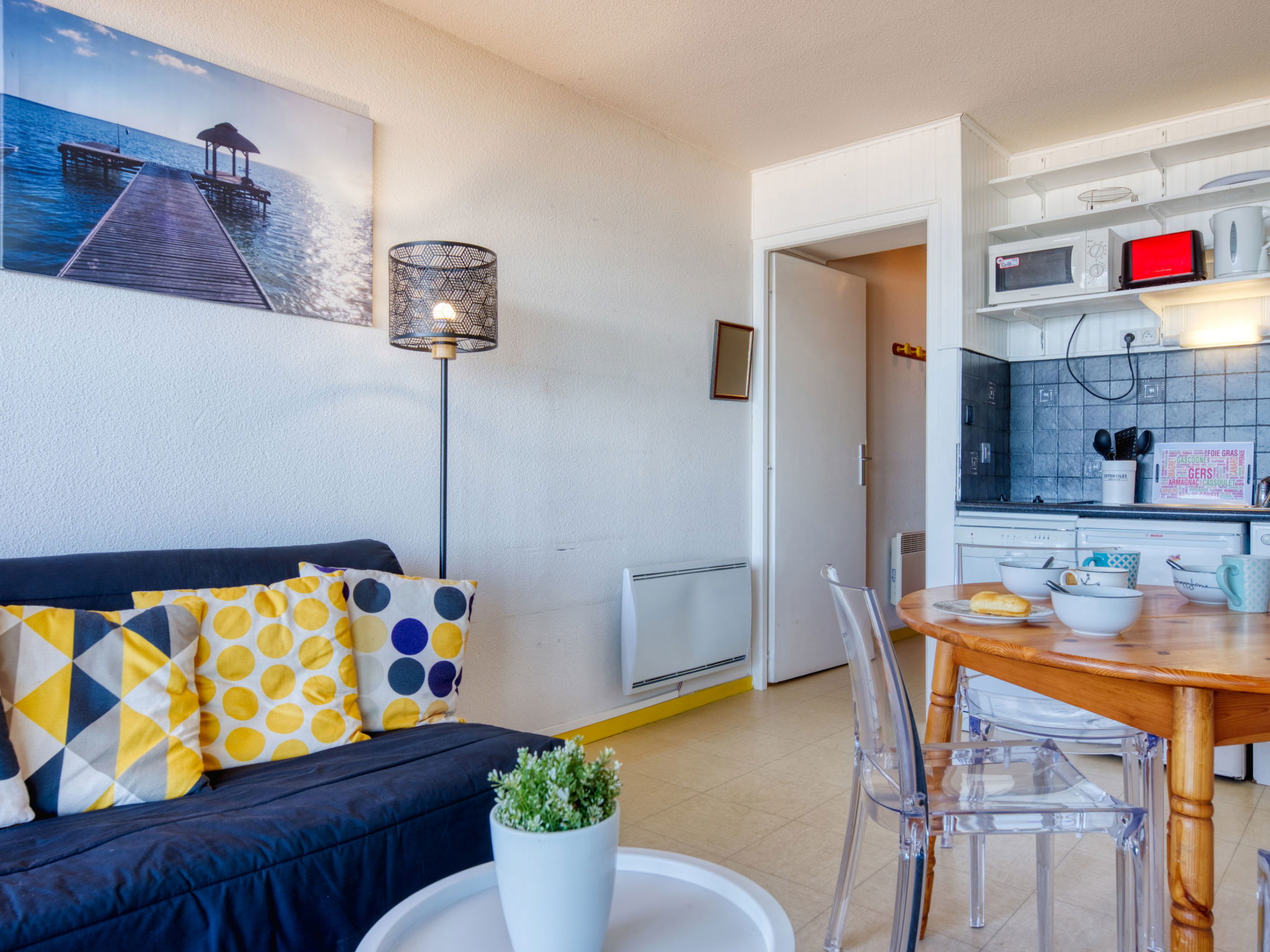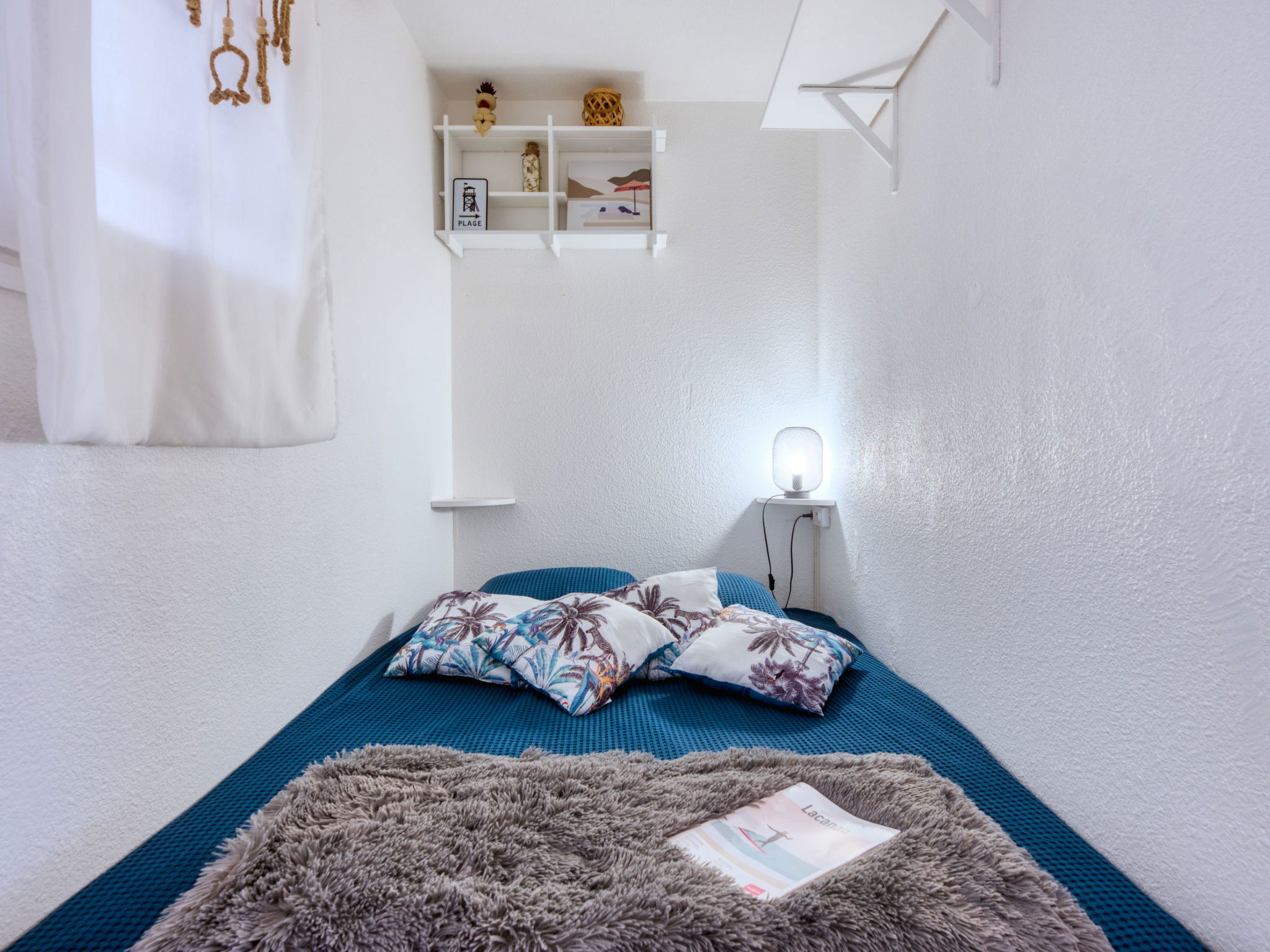 2-room apartment 25 m2 on 2nd floor, west facing position. Living/dining room with 1 double sofabed (140 cm, length 190 cm), TV (flat screen). Exit to the terrace. Alcove with 1 x 2 bunk beds (90 cm, length 180 cm). Kitchen (2 hot plates, dishwasher, toaster, kettle, microwave, electric coffee machine, Capsules for coffee machine (Nespresso) extra). Shower/WC. Electric heating. Terrace 6 m2, west facing position. Terrace furniture. Very beautiful view of the ocean. Facilities: washing machine. Internet (WiFi, extra). Reserved parking space n 23. Please note: non-smokers only. Smoke alarm. Offer by a private individual according to Art. 155, IV of CGI.