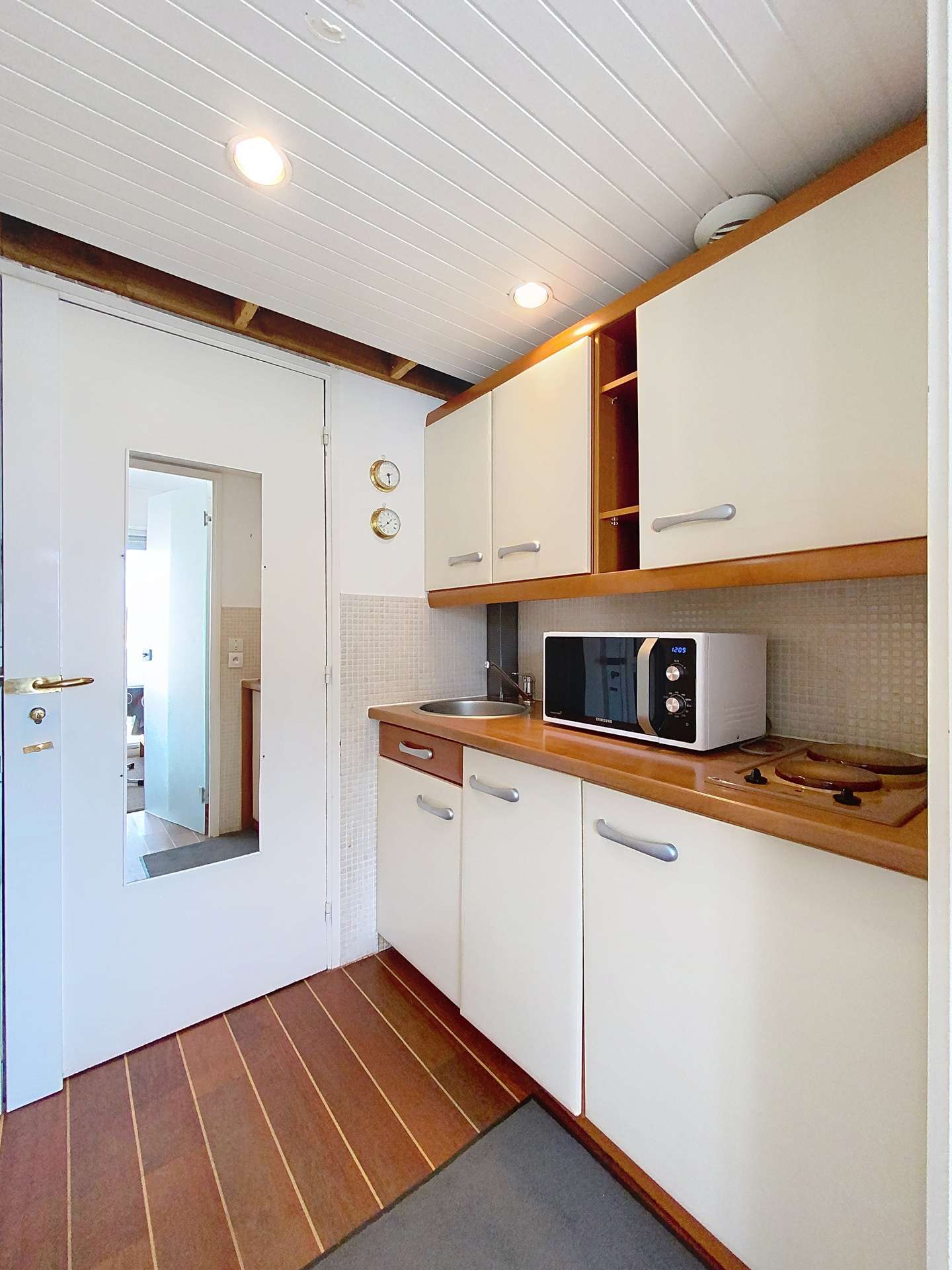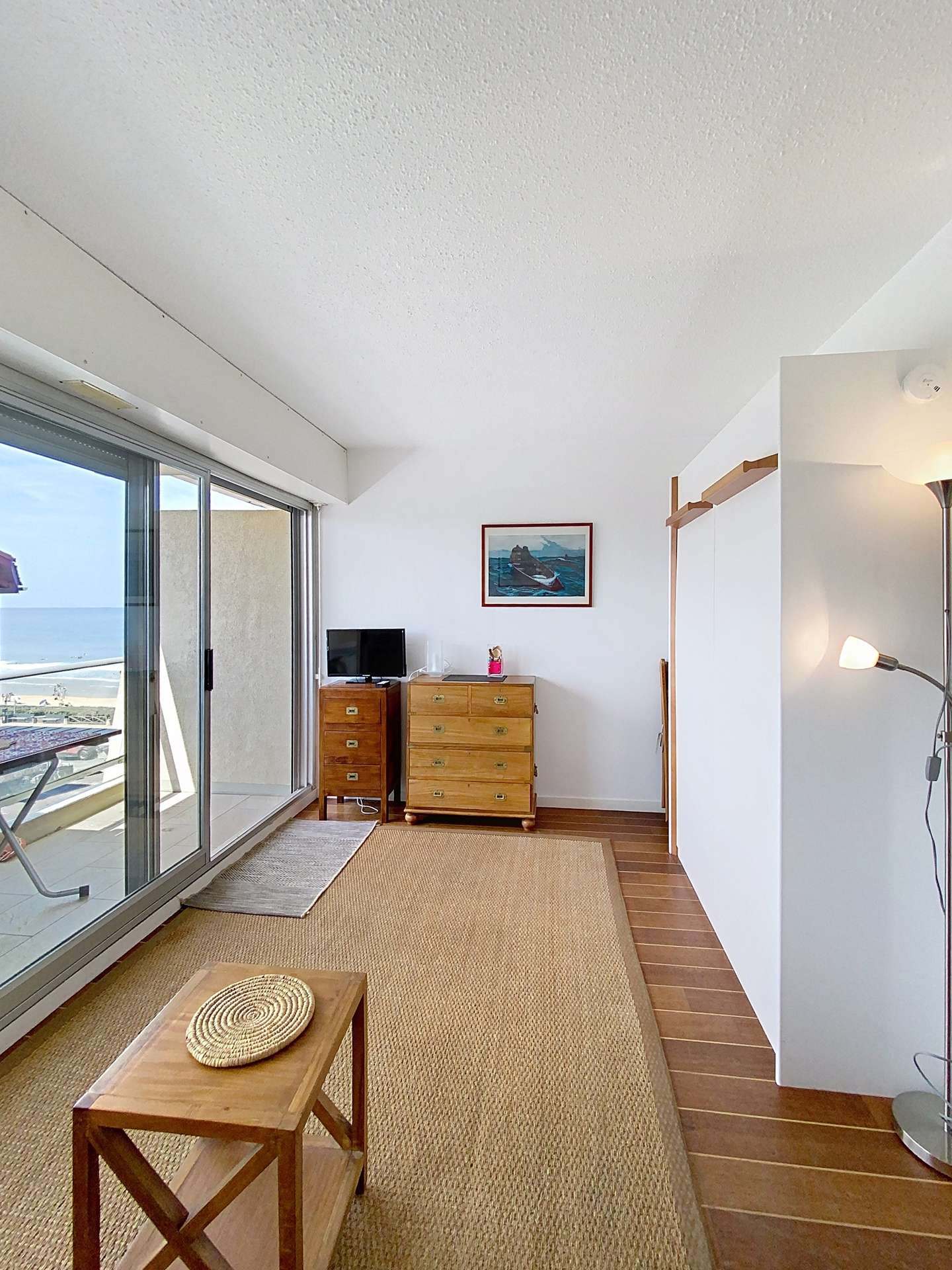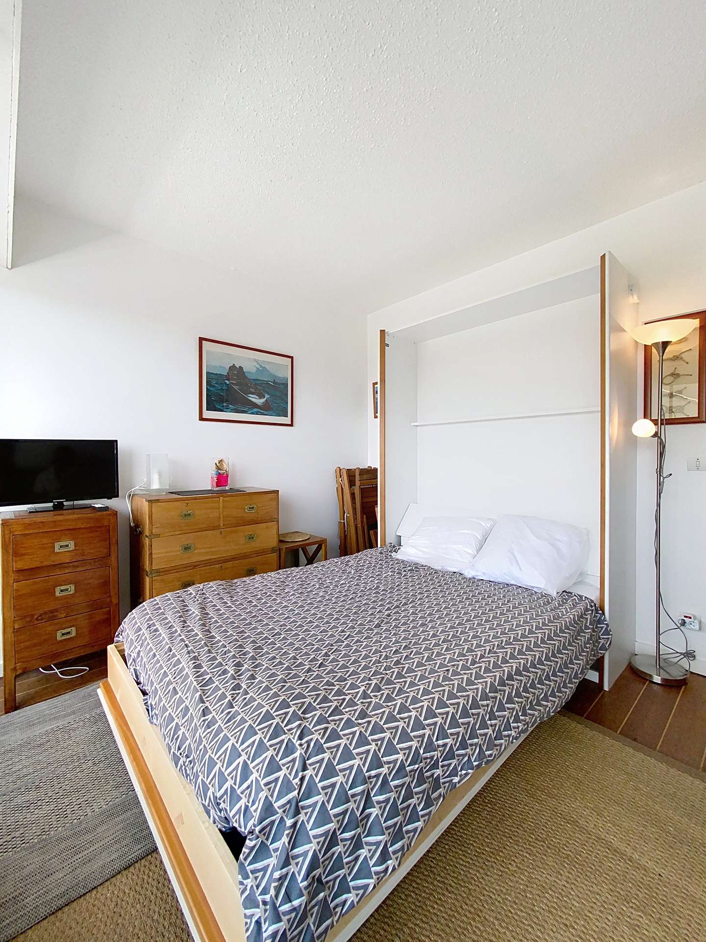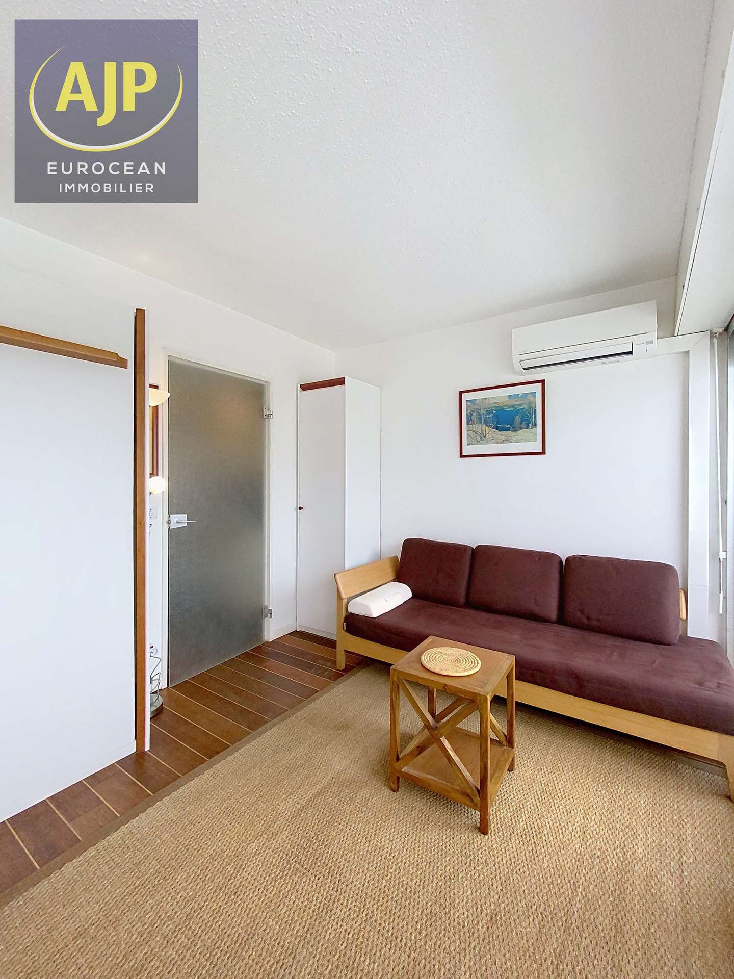 A pleasant renovated studio, for the reception of two people, located on the 3rd and last floor of the residence Casino, secured by an electric gate, with an elevator, two steps away from the shops and the central beach. Get a side view of the ocean from the balcony. Entrance/Equipped Kitchen, Living room with pull-down bed to optimize living space. A large bay window opens to the balcony with garden furniture. Shower room with sink and toilets. You also have a private underground garage (Please note that the basement garage has reduced dimension L=4,80m x l=2.10m x H=2.00m) with secure access via an automatic portal. Join the beach and shops at 50m, the Golf at 3km and the lake at 6km. REF 00077. BED LINEN AND TOWELS ARE NOT PROVIDED.