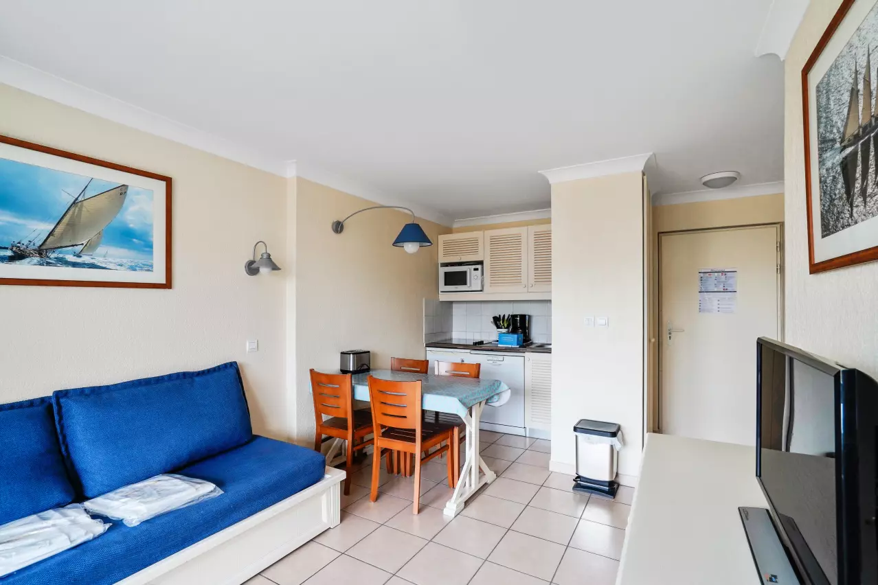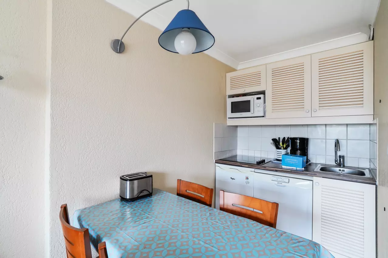 Your vacation rental includes: 1 living room, 1 kitchen, 1 bedroom, 1 bathroom, 1 separate WC, 1 balcony and free public outdoor parking around the residence.