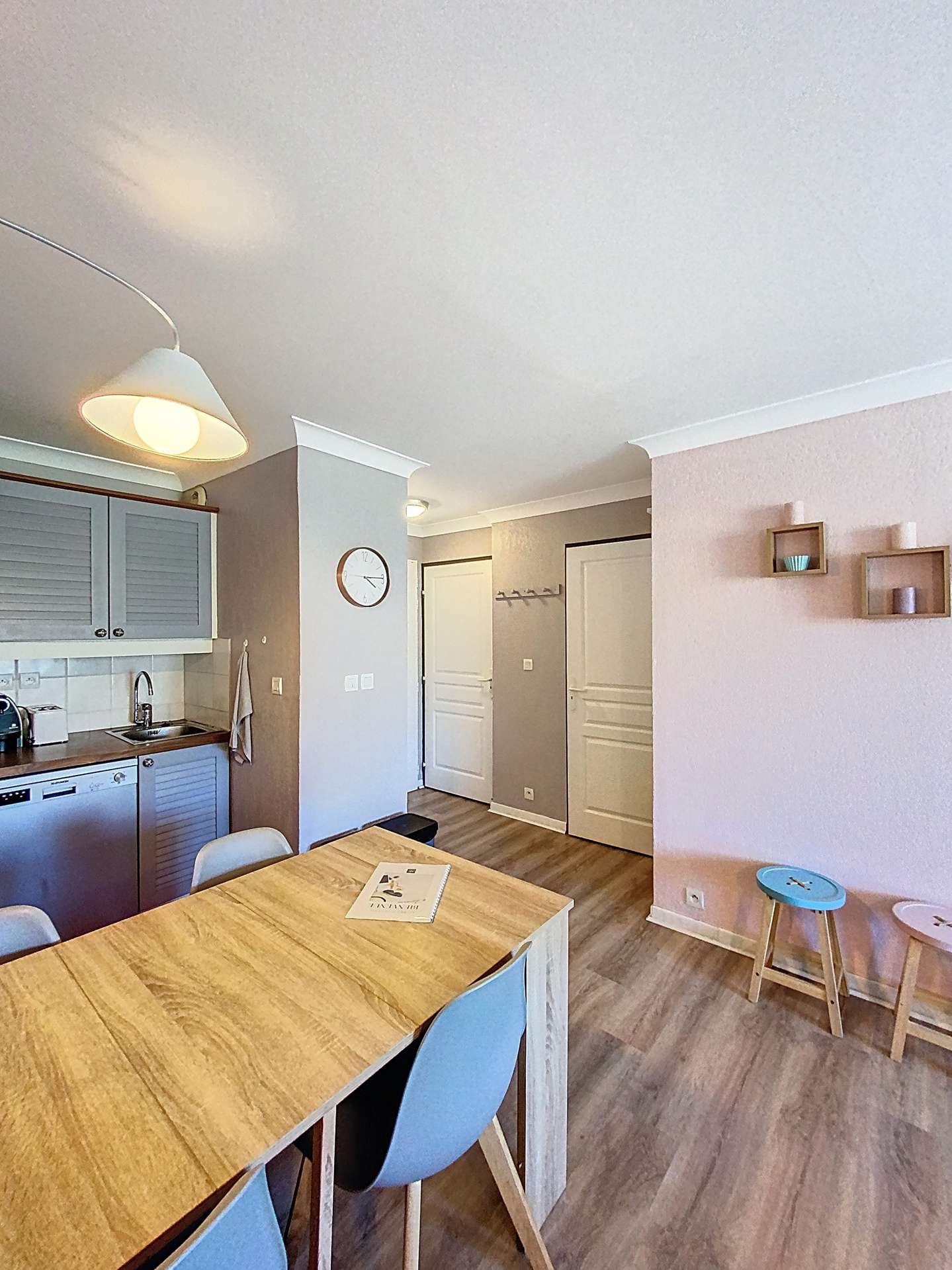 Residence "Bleu Marine", south sector of Lacanau, pleasant flat for 4 people on the garden level of a tourist residence, quiet, secure, with swimming pool (open from 15 June to 15 September) and laundry (at opening times and according to current rates). Lodging with a modern and neat decoration. Enjoy direct access to the beach from the residence. The living room, with kitchenette, is equipped with a sofa bed (140cm), it opens onto a balcony with garden furniture. The bedroom is equipped with a double bed, the bathroom with a bathtub, washbasin and separate toilet. Free parking is available at the foot of the residence. Umbrella bed at your disposal on the spot. The beach is 50 m away, shops, restaurants and ice-cream parlours are 500 m away, the golf course is 2 km away and the lake 5 km -(REF 01396) ANCV holiday vouchers accepted
