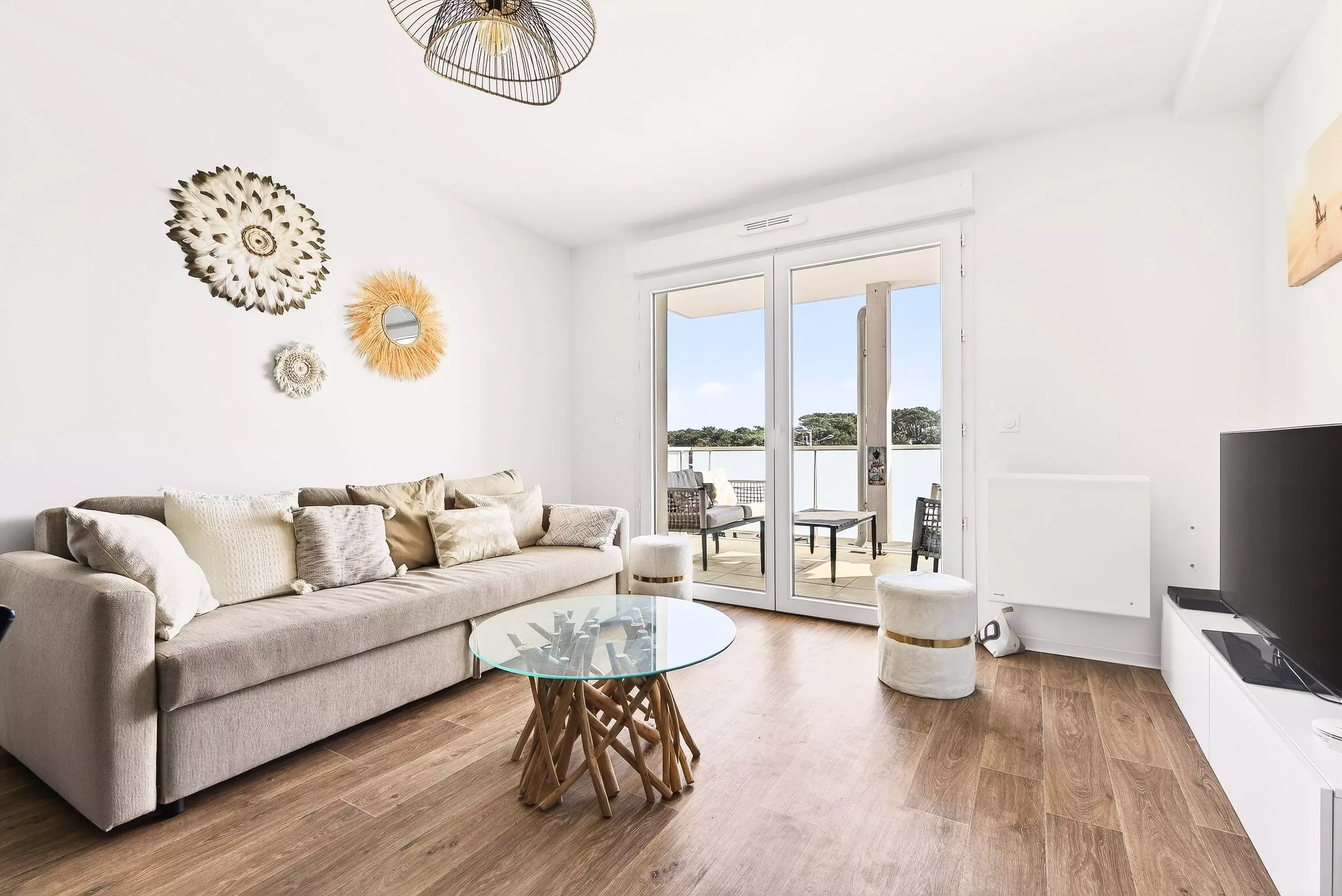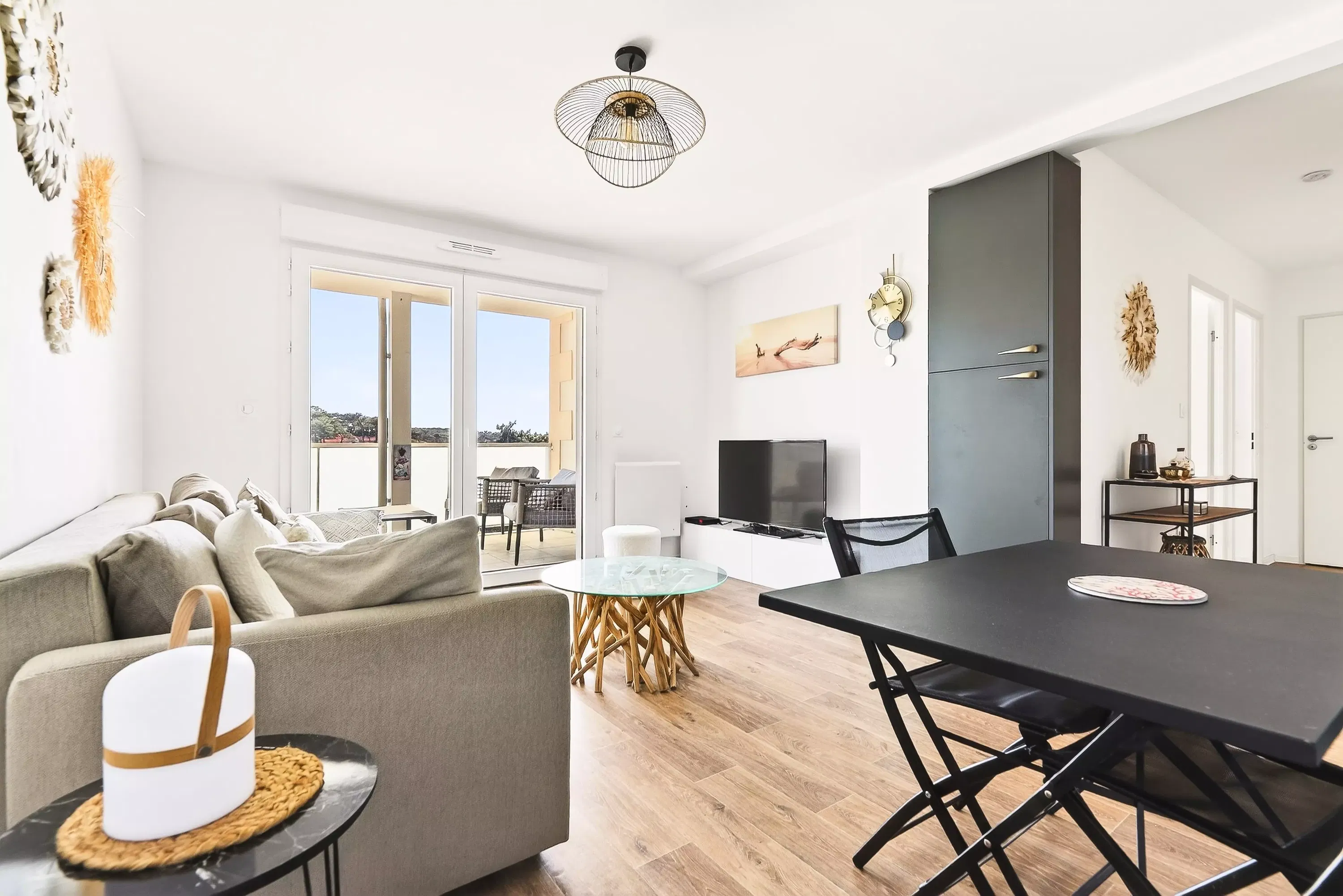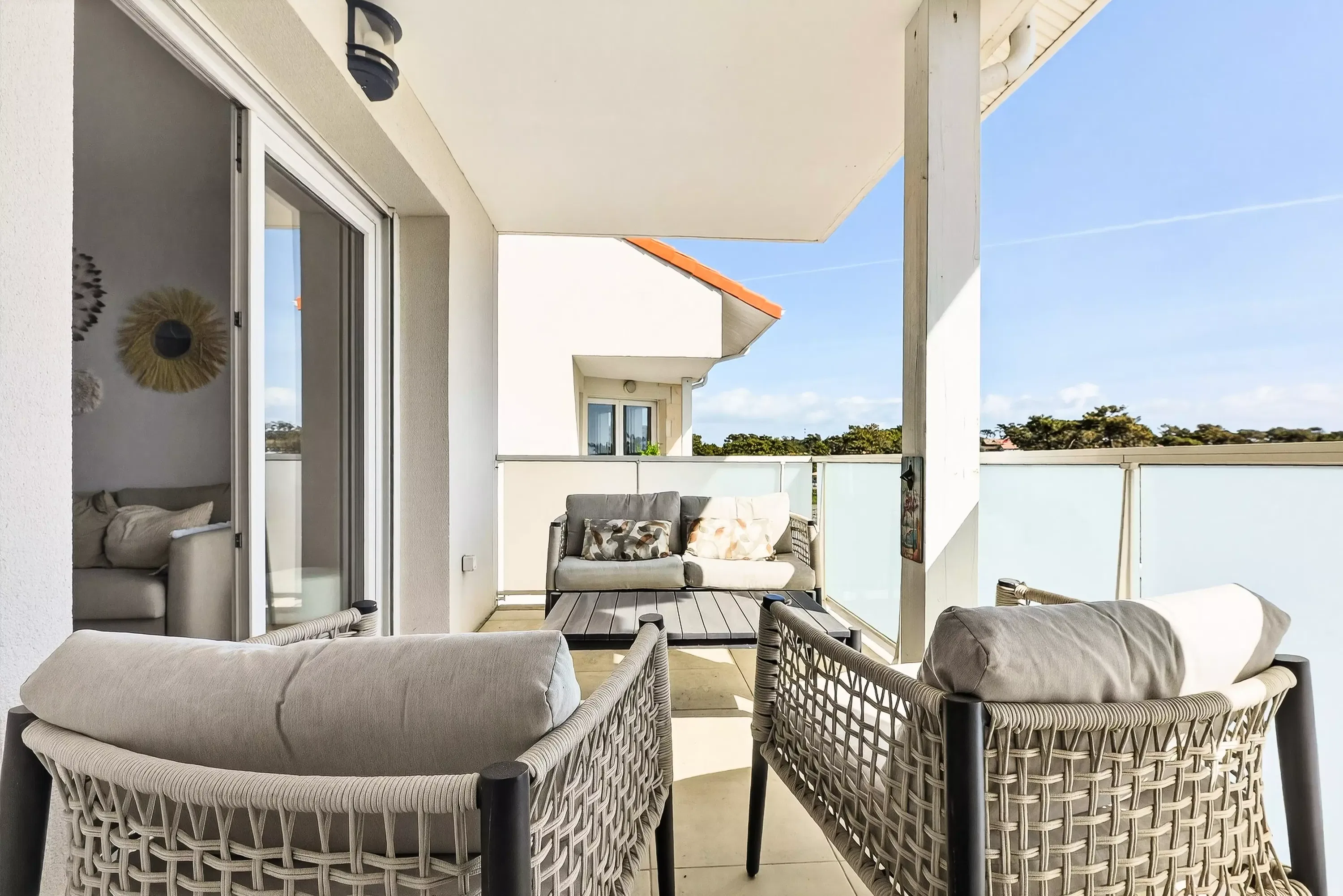 Its main advantage lies in its south-facing covered balcony, perfect for meals or relaxation. The accommodation also offers convenient amenities such as dedicated outdoor parking and a high-speed internet connection.