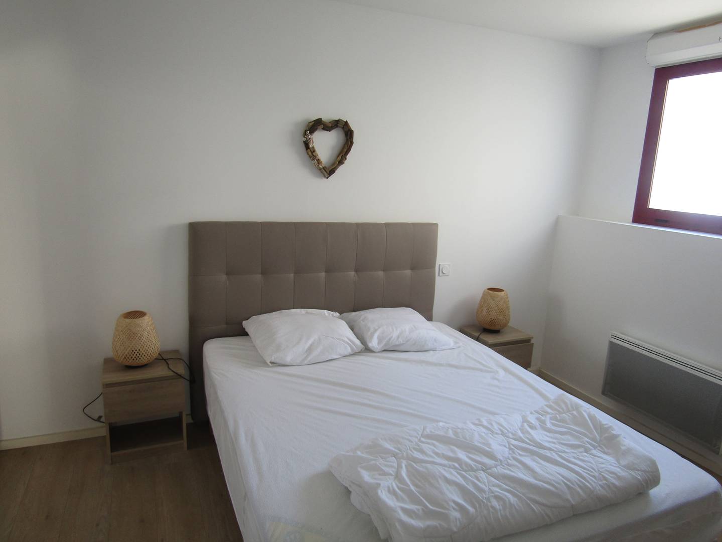Spacious 3-room apartment 80 m² approximately, located 50m from the beach, on the ground floor and equipped for people with reduced mobility, for 4/5 people. West-facing living room comprising, living/dining room 30m² approximately, open kitchen with dining area and 2 bedrooms, a bathroom with toilet and terrace accessible by living room and bedroom. The bedroom is equipped with a double bed (160cm) the second with bunk beds (2 x 90 cm) each is equipped with a dressing room. You benefit from a terrace area equipped with garden furniture (table/chairs) facing west. Private and secure parking space at the Carnot covered car park. Beach, shops, shops about 50m, Golf 3 km and Lake Lacanau about 6km. Reach the nature reserves, the activities on the lake or the surrounding villages thanks to the network of bike paths (130km). Noisy area in summer. Ref 02407 Holiday checks accepted.