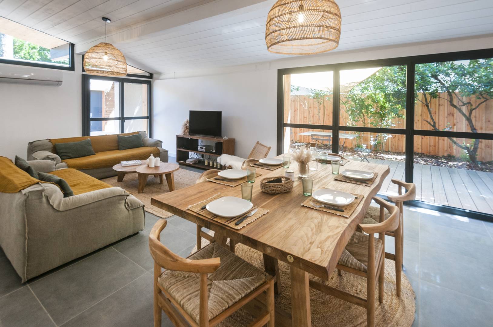 Located in the southern district of Lacanau ocean, villa with jacuzzi on 580m² of land, 4 bedrooms including 1 annex for the reception of 8 people. You will appreciate the fully enclosed garden with garden furniture (west exposure). A living room with a kitchen area opening by bay window on the garden. 3 bedrooms (beds 160cm), north exposure, with a shower room with washbasin and laundry, separate toilet. The annex with 1 double bed 160cm, shower and toilet. This accommodation also includes a secure car park. Join the shops, restaurants, surf schools at 300m, the beach at 500m, the golf at 1.5km and the lake at 5km (REF 04092)