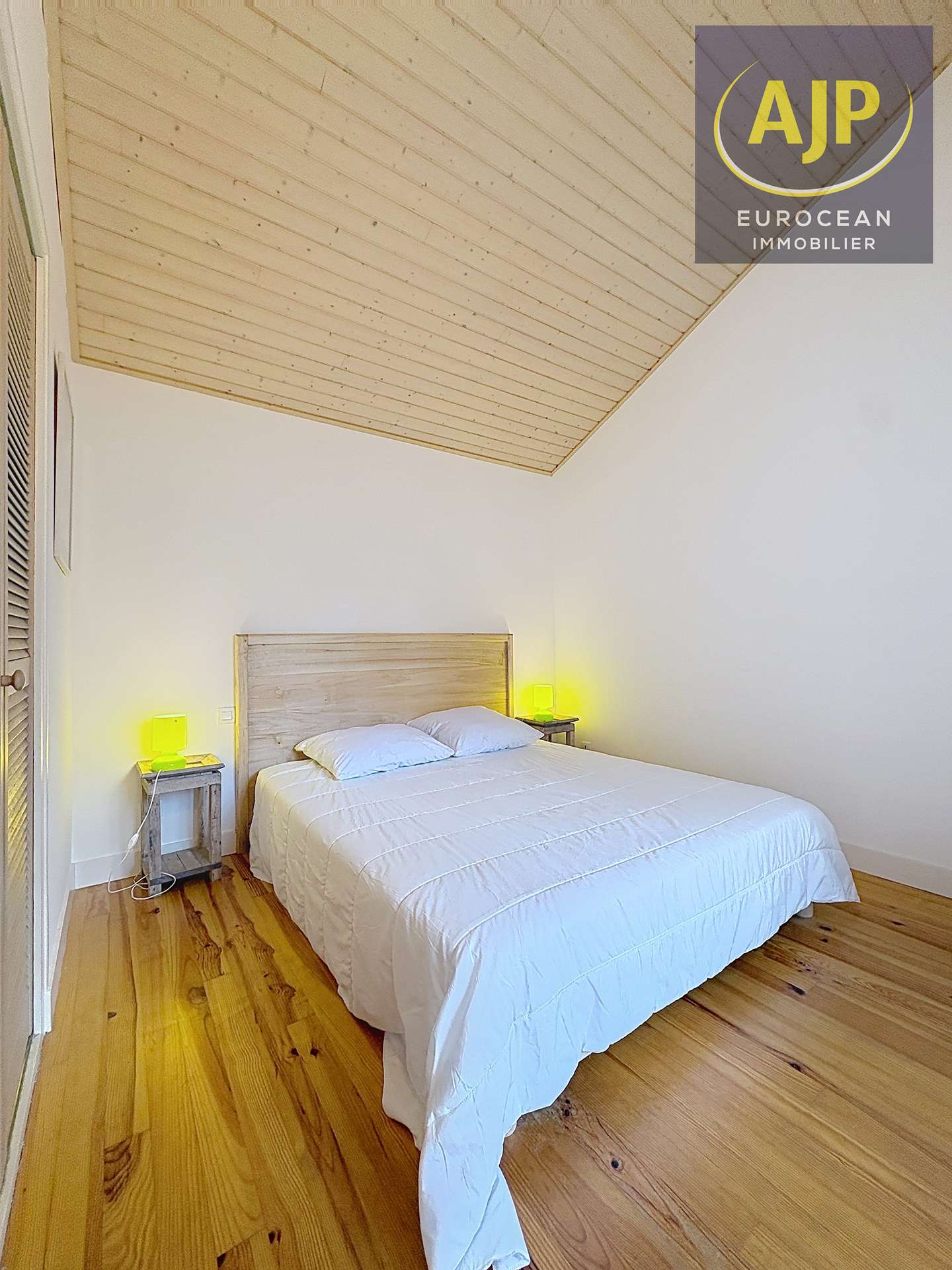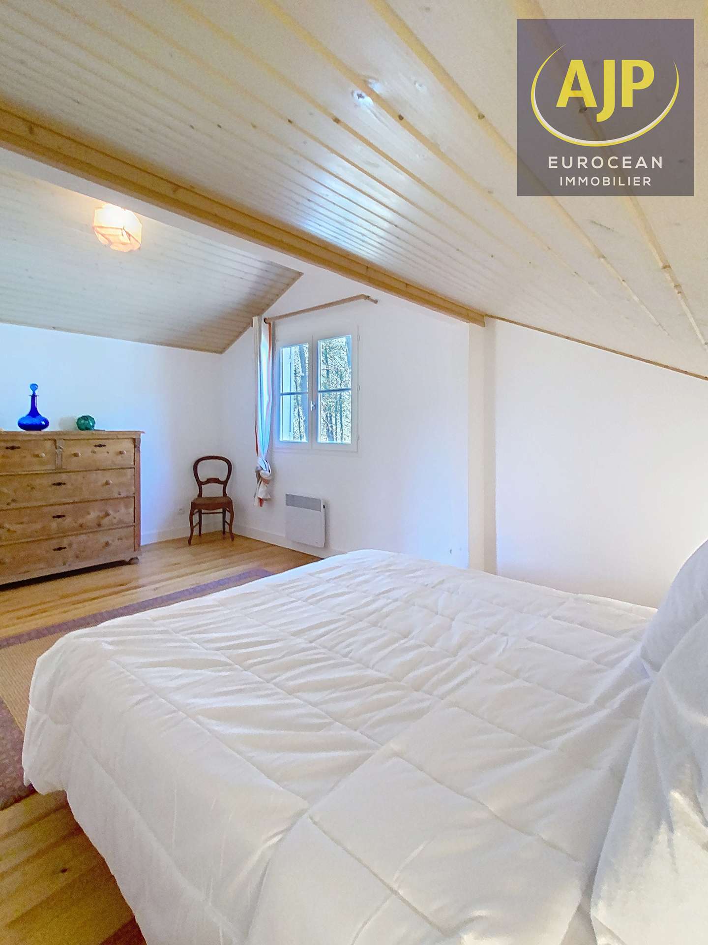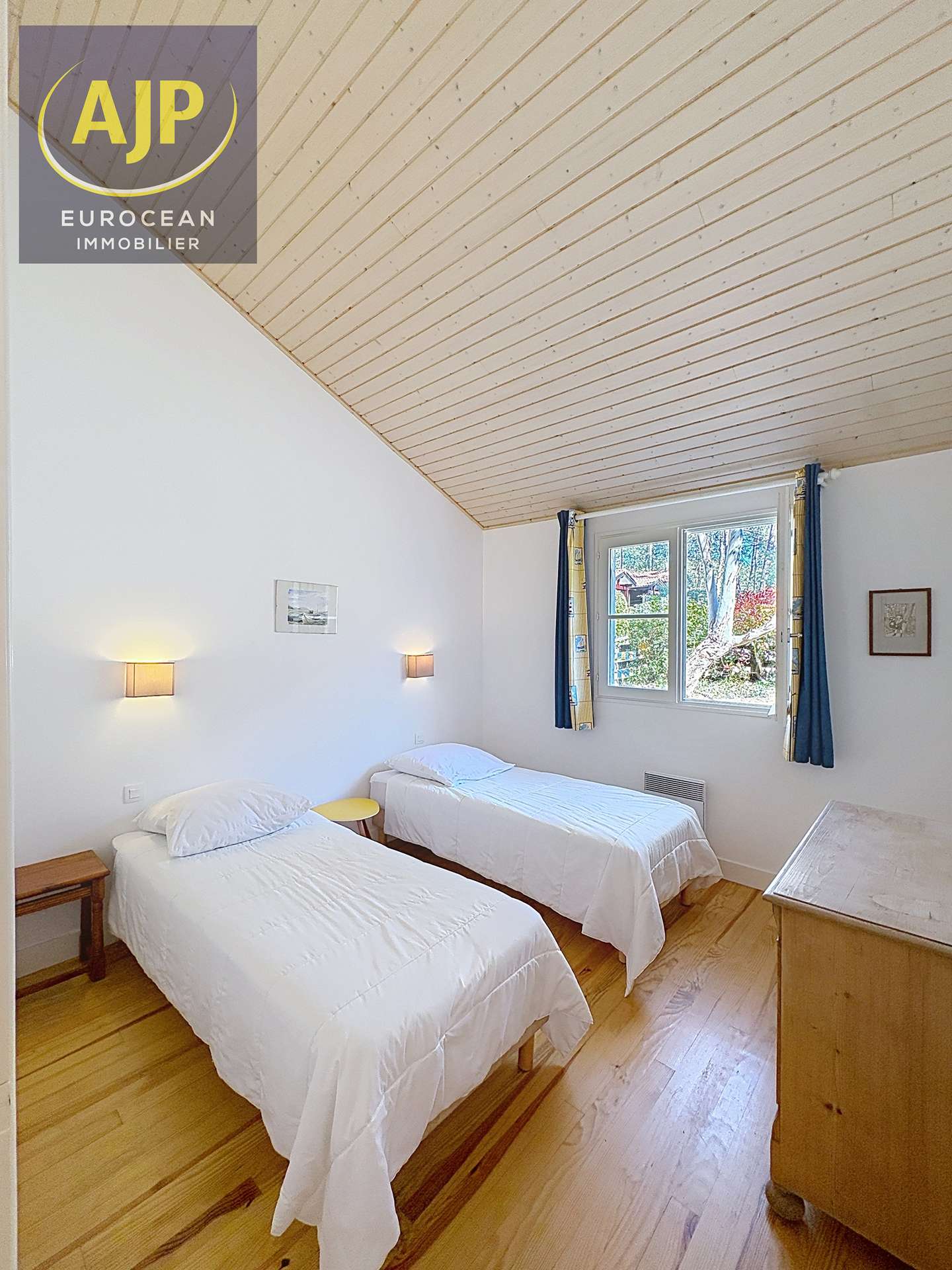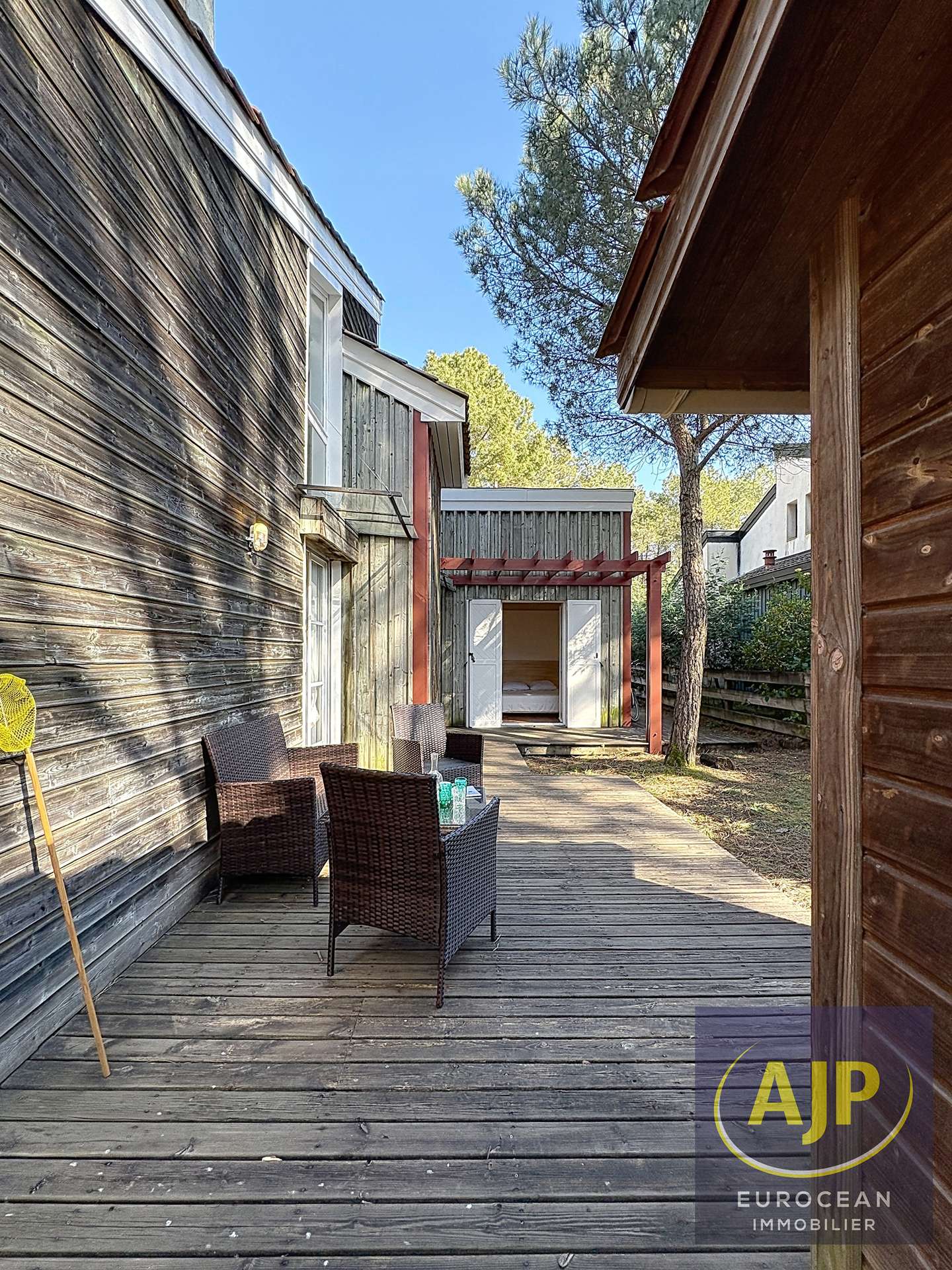 Residence under pine trees. You have the possibility to reach the resort and the beaches directly via the bike paths (at the foot of the garden). It is a pleasant independent house, bright and spacious with one floor for eight people. The American kitchen opens on the living/dining room. You will enjoy a large main room opening onto a wooden terrace north/west and south/west facing with garden furniture. The garden is treed and not enclosed. Three rooms are located on the ground floor, one with a double bed (160cm), one with two twin beds (2x80cm) and a third with bunk beds (80cm). A shower room with toilet and a second shower room on the ground floor. Upstairs a large bedroom with a double bed (160cm) and a bathroom with toilet. In front of the house, 2 private parking spaces. Beaches and shops are 2,5 km. Tennis, squash and Golf to 200m. The lake and sailing school at 3 km - REF 04080