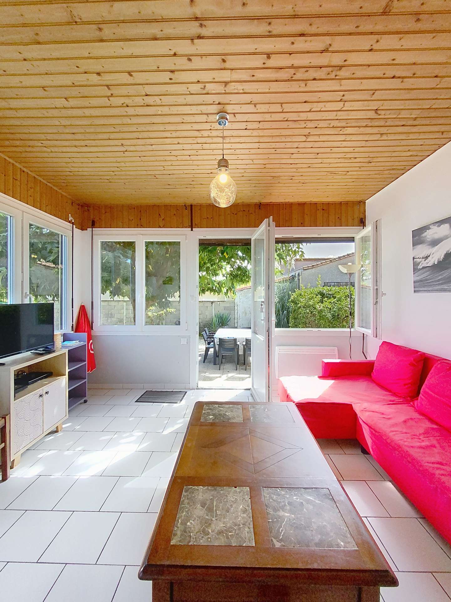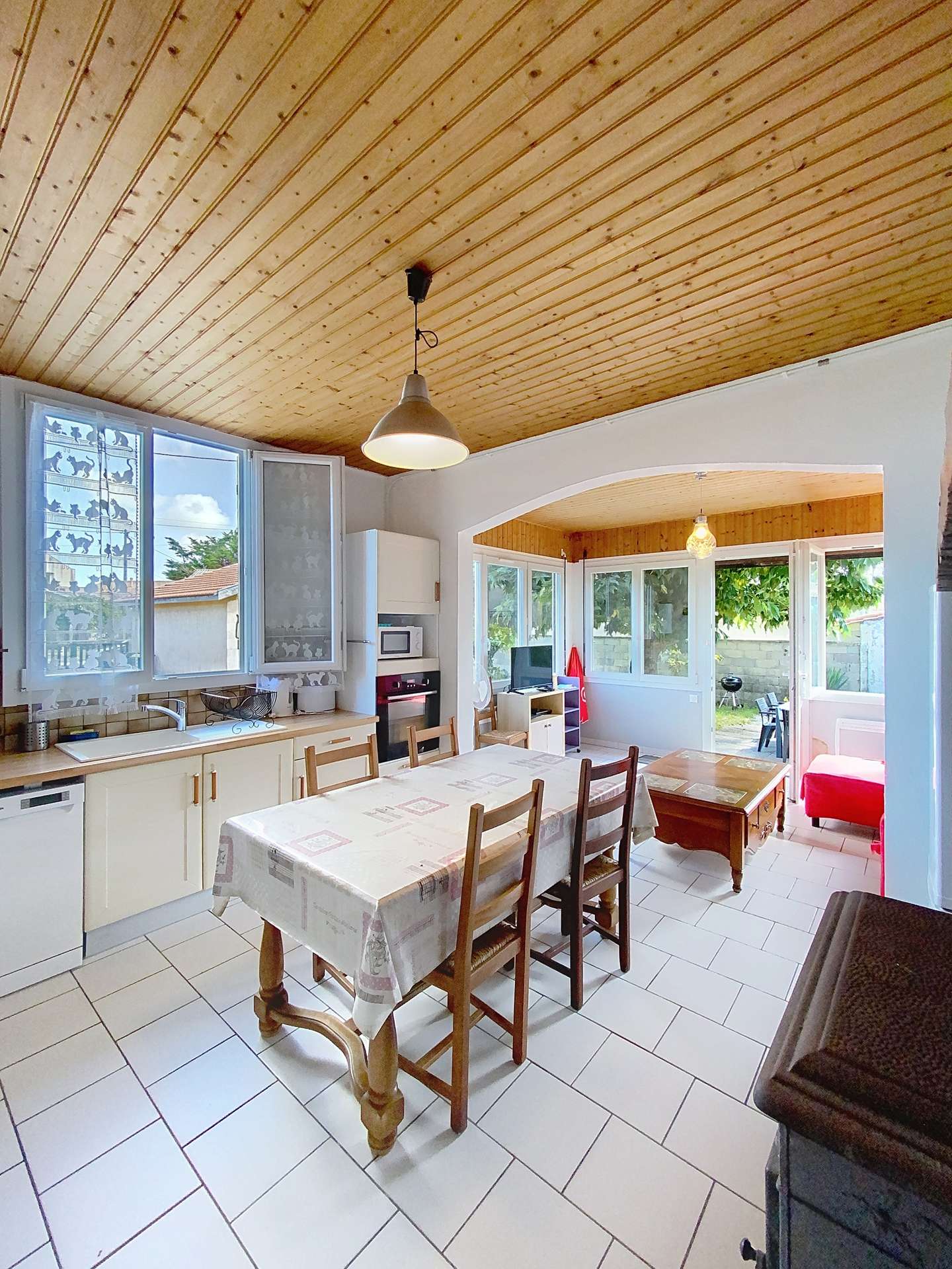 Southern district of Lacanau ocean, close to the beach, shops and activities, you are in a quiet and privileged area. You will appreciate this house, 75m² approximately, recently renovated for 7 people. The main room serves as a living/dining room, largely glazed, it opens, through a French window, to the outside: garden and terrace facing south/east with garden furniture. The kitchen area is open to the living room (dining area). The beds are divided into three bedrooms: two bedrooms are equipped with a double bed, the third is equipped with bunk beds and 1 single bed. There are shower room and independent WC. Free Wifi access. Possibility of parking on the garden for 2 cars or car + trailer. Reach the beach at 200 m, shops, restaurants and glaciers at 300 m, golf at 3 km or the lake at about 6 km (REF 03260)