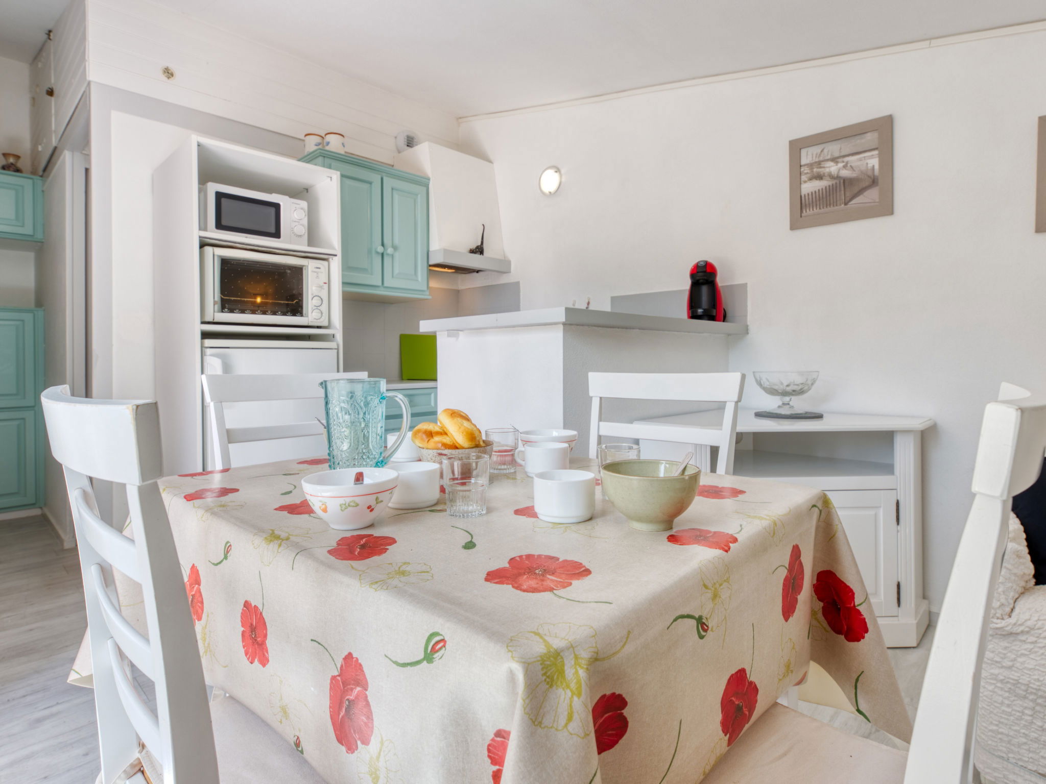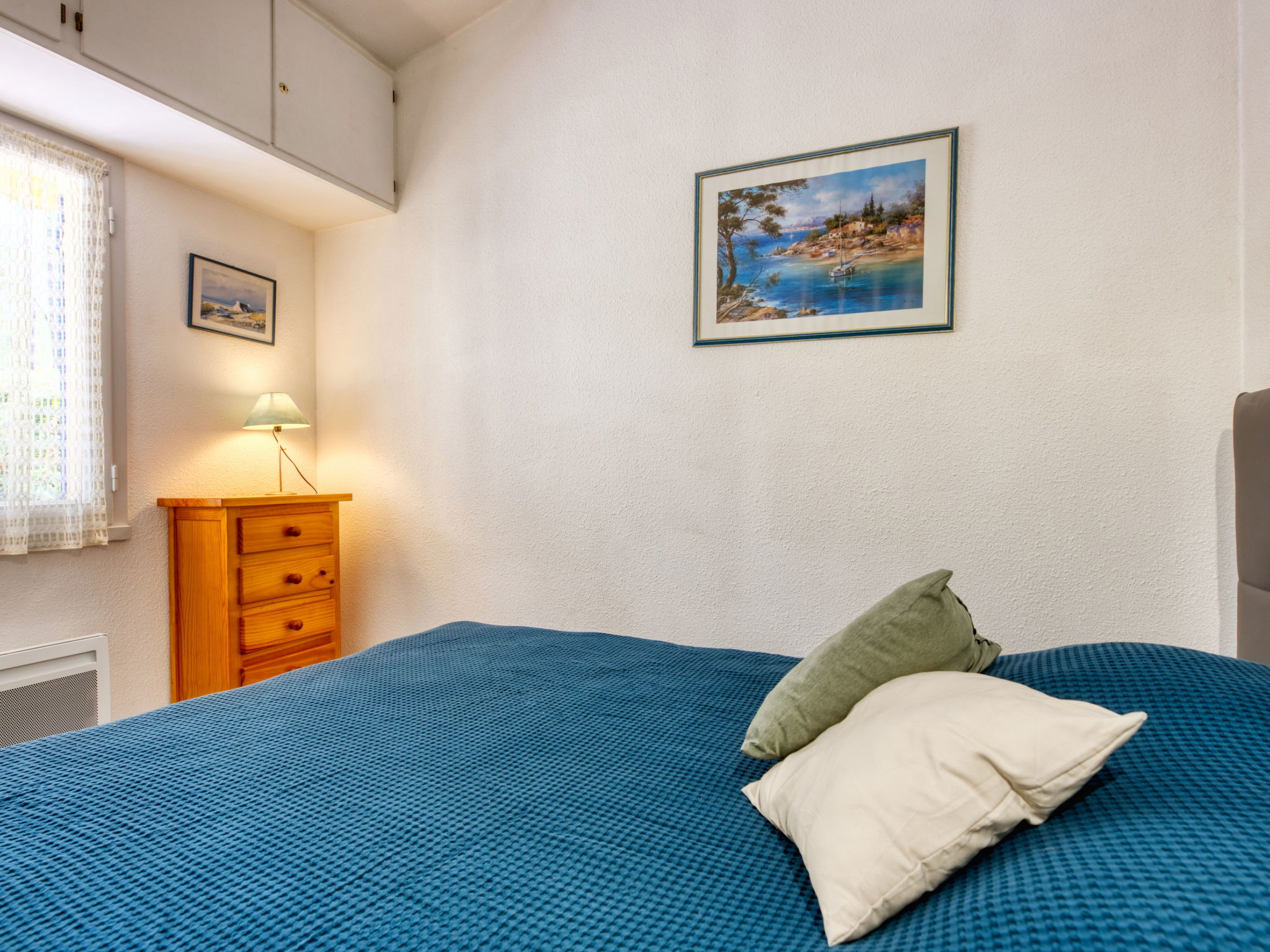 2-room terraced house 32 m2. Living/dining room with TV (flat screen). Alcove with 1 x 2 bunk beds. 1 room with 1 french bed and TV (flat screen). Kitchenette (2 hot plates, mini-oven, oven, dishwasher, microwave, electric coffee machine). Bathroom, sep. WC. Heating. Terrace, patio. Terrace furniture. Facilities: washing machine, iron. Internet (WiFi, extra). Parking space n 15. Please note: non-smokers only. Smoke alarm. Instead of an enclosed bedroom, some sleeping areas are located in an open-plan area (gallery, alcove, etc.). Offer by a private individual according to Art. 155, IV of CGI.