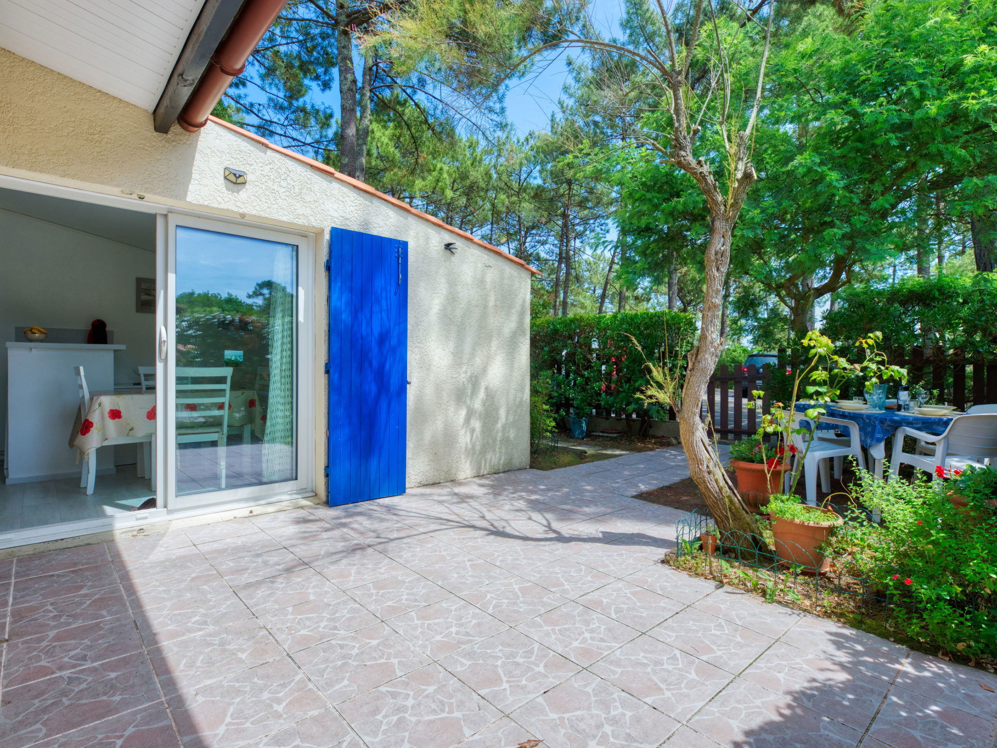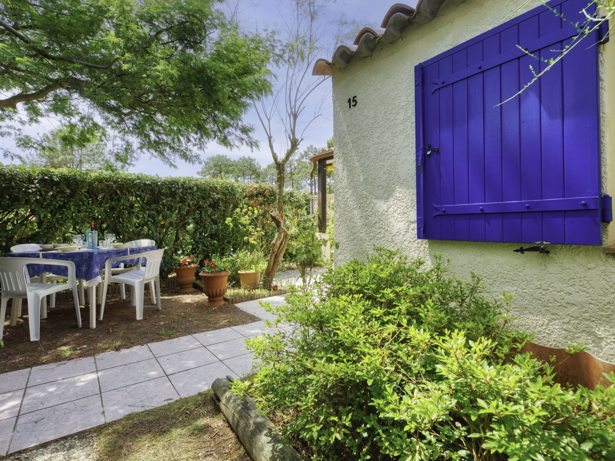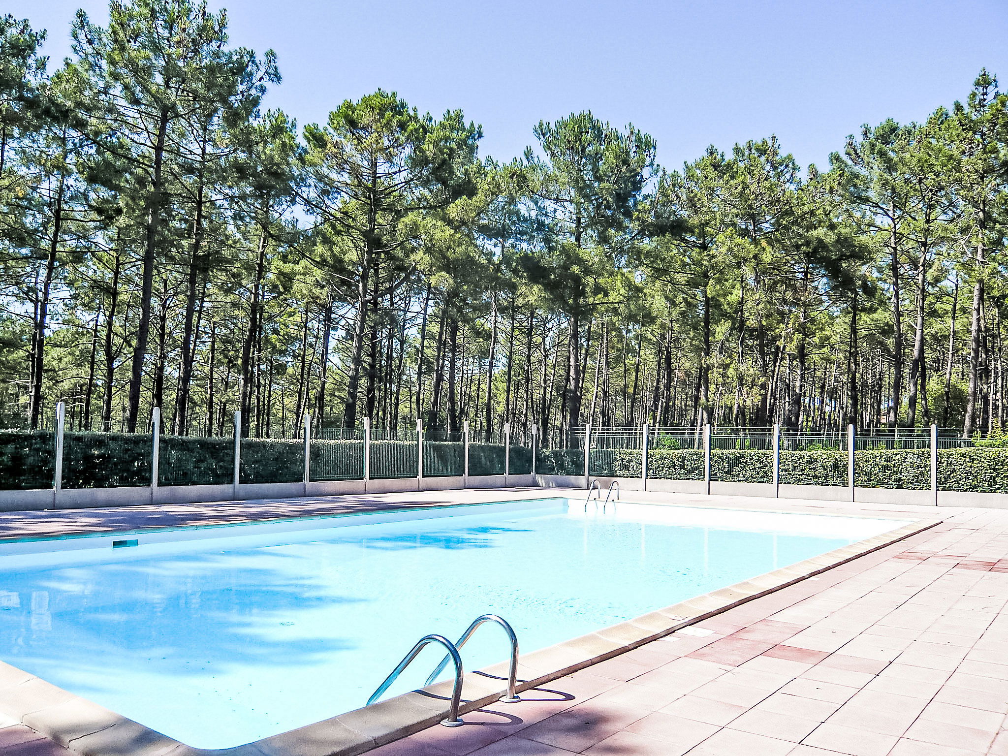 Residence "Les Palombes". On the outskirts, 2 km from the centre, 2 km from the sea, 2 km from the beach, in the woods. For shared use: swimming pool (12 x 8 m, depth 100 - 180 cm, seasonal availability: 15.Jun. - 15.Sep.). Shop 2 km, supermarket 2 km, bus stop "Marie Curie" 850 m. Golf course (18 hole) 3 km, tennis 1 km, riding stable 15 km.