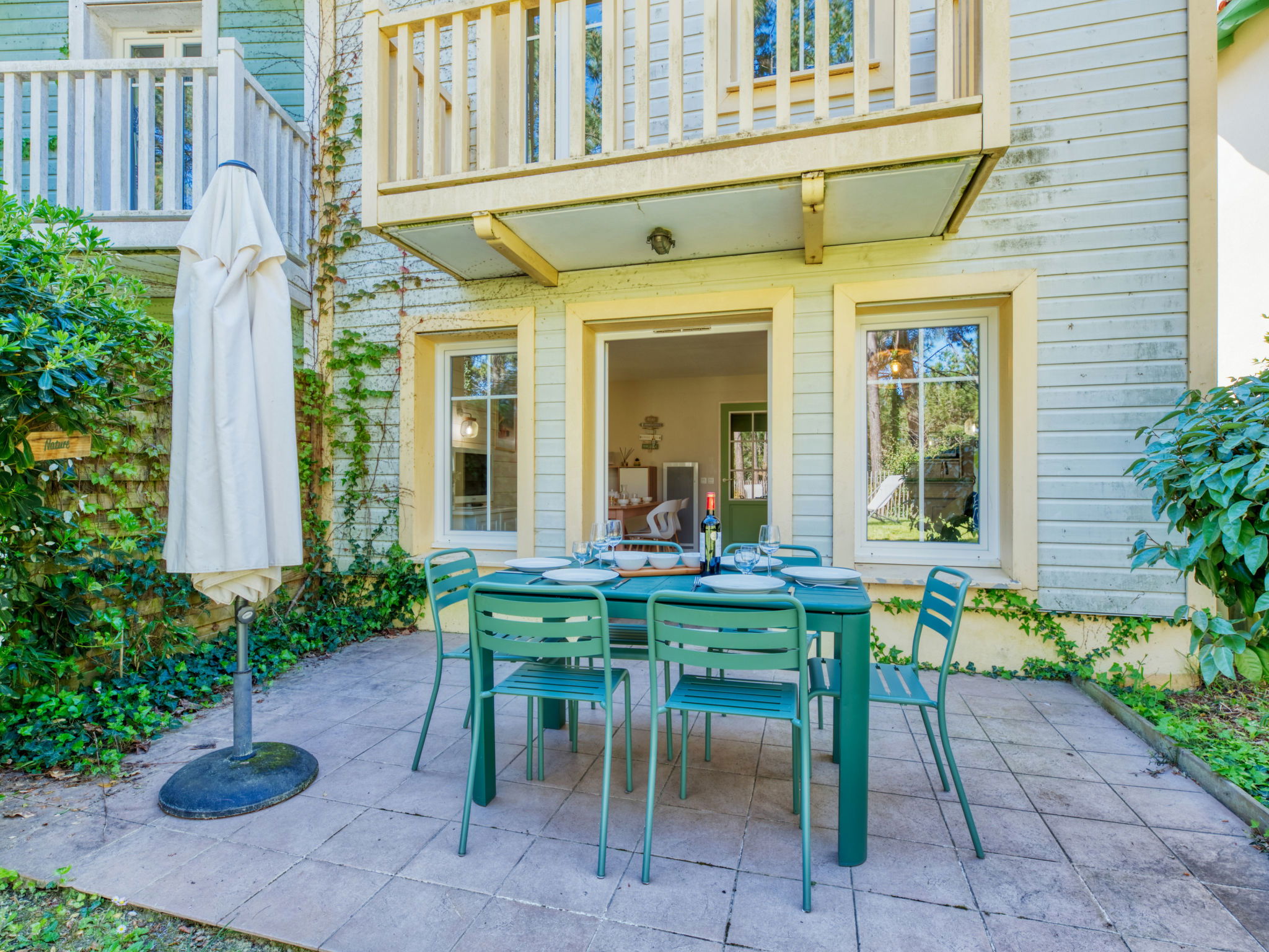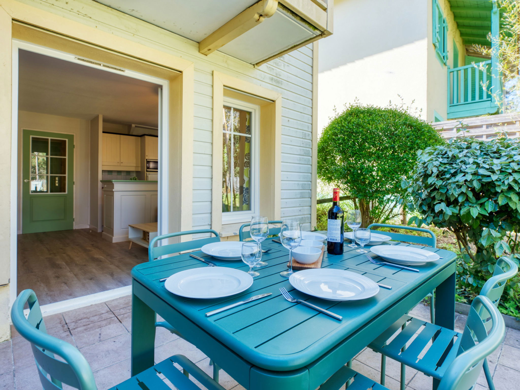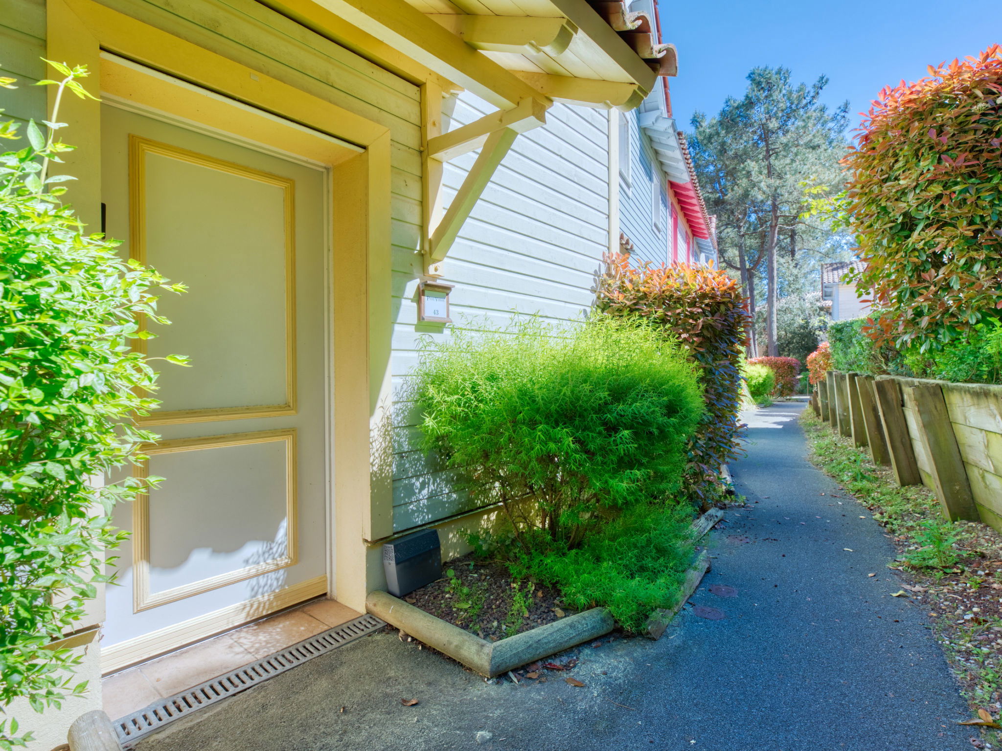 Holiday village "Domaine Golf Resort", surrounded by trees. In the resort 2 km from the centre of Lacanau ocean, 2 km from the sea, 3 km from the lake, 2 km from the beach, on the golf course. For shared use: swimming pool fenced (400 m2, seasonal availability: 15.May. - 15.Sep. pool opening hours: 10:00-19:45). Children's pool, table tennis, basketball, boccia, volleyball court, children's playground. In the complex: reception, laundry (for shared use, extra), bicycle rental. Bread roll service and beverage service. Parking. Shop 2 km, supermarket 2 km, bicycle rental 300 m, bus stop "Marie Curie" 1.7 km, sandy beach "Plage des Ecureuils" 4 km, lake Du Moutchic 6 km. Golf course (18 hole) 500 m, surf school 2 km, tennis, riding stable 12 km, cycle lane 200 m. Nearby attractions: Bordeaux 60 km, Saint Emilion 60 km, Dune du Pyla 60 km.