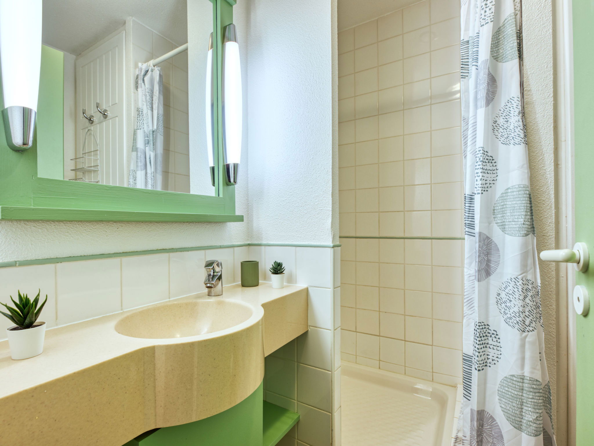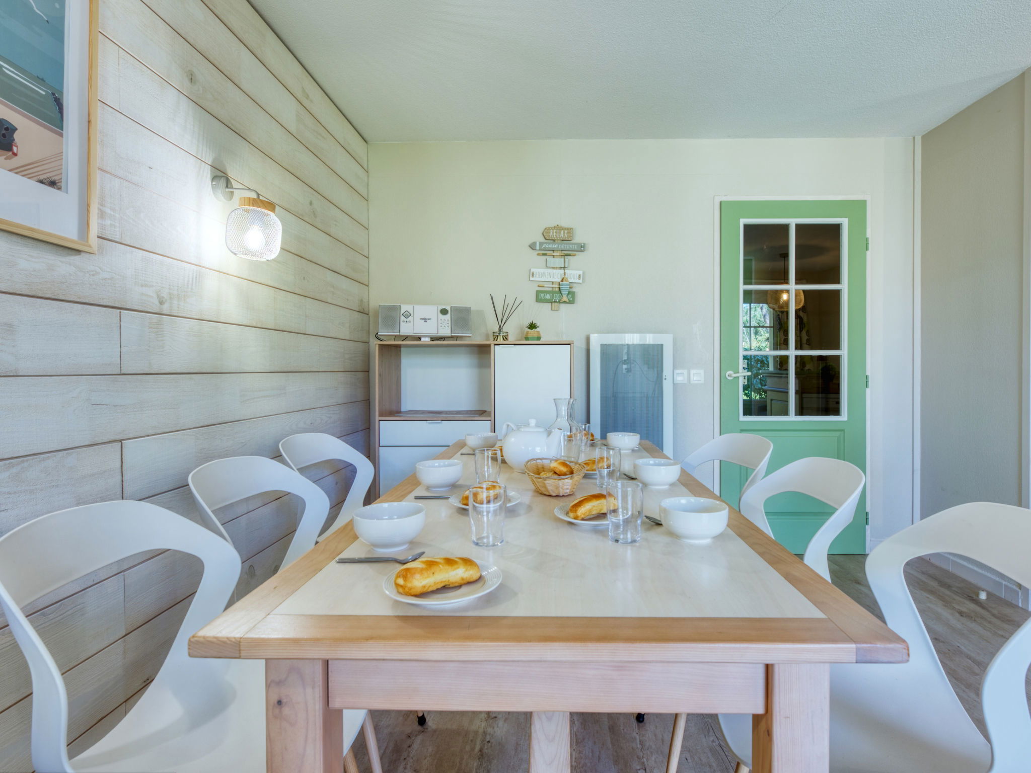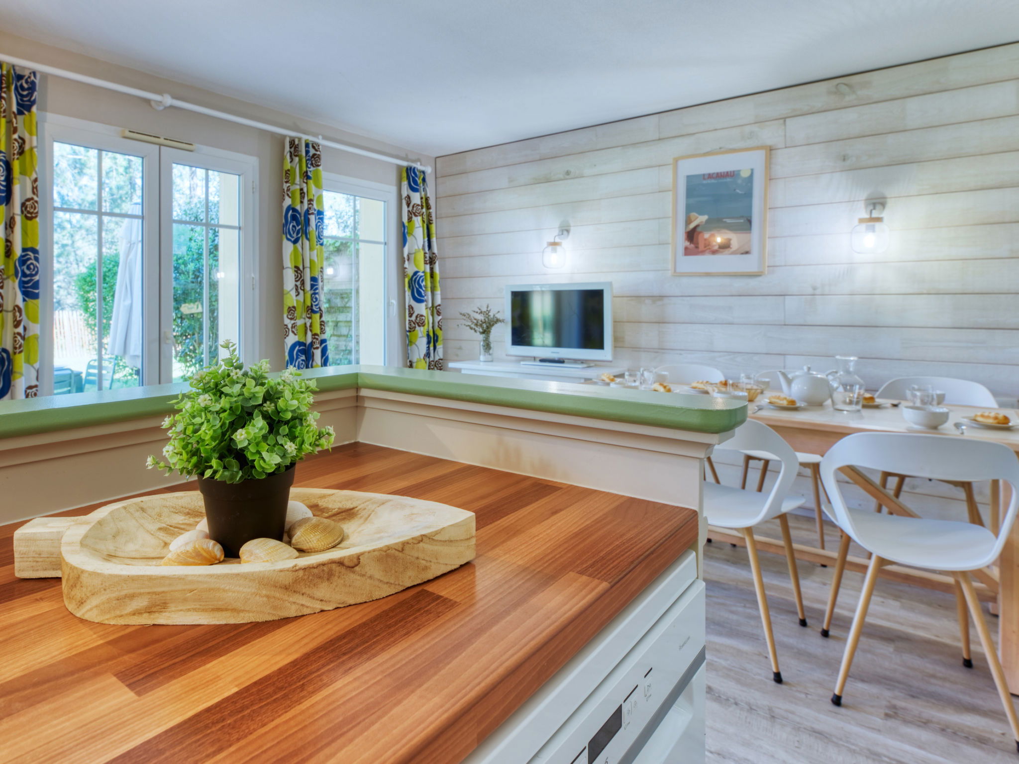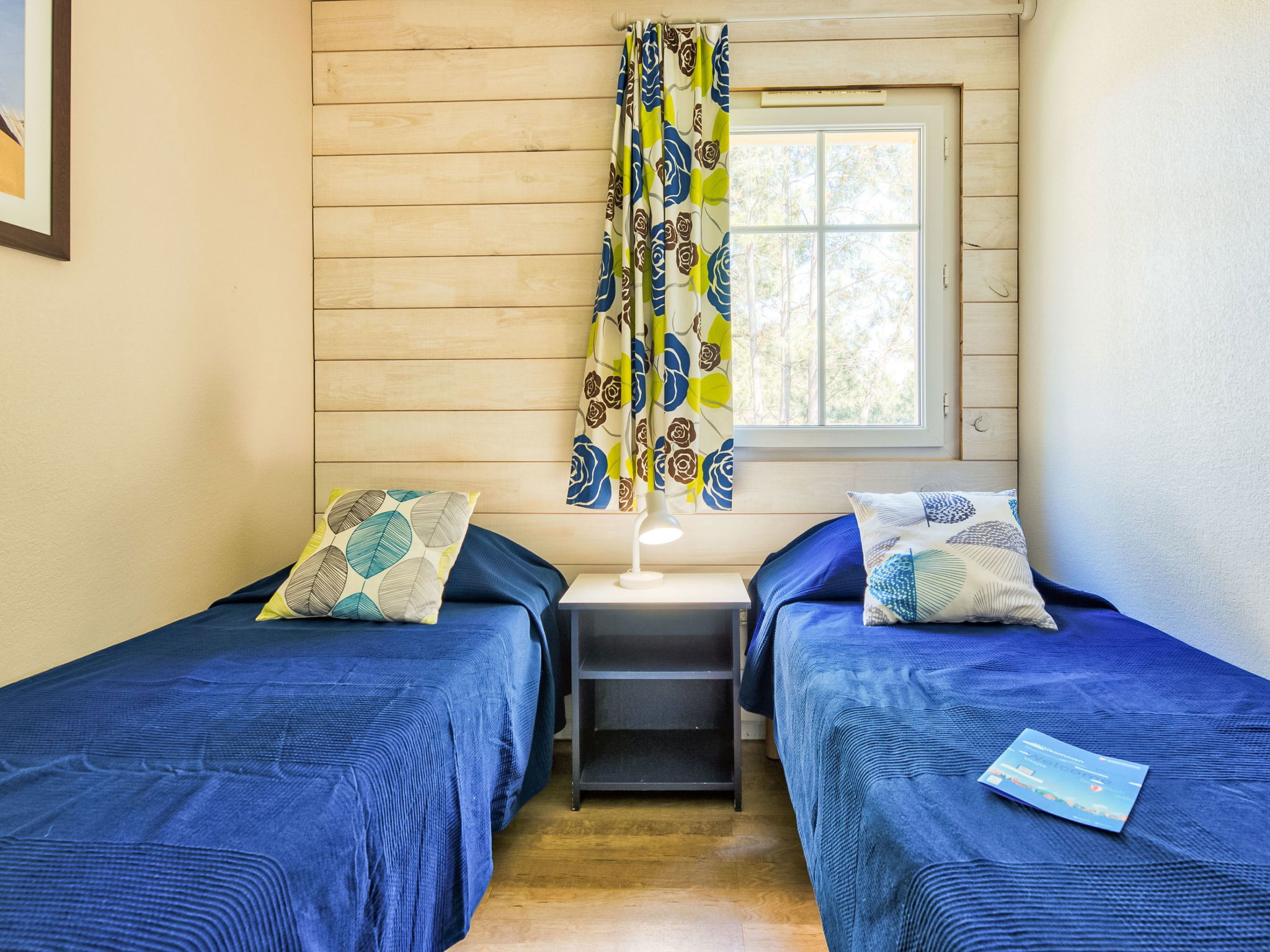 Holiday village "Domaine Golf Resort", surrounded by trees. In the resort 2 km from the centre of Lacanau ocean, 2 km from the sea, 3 km from the lake, 2 km from the beach, on the golf course. For shared use: swimming pool fenced (400 m2, seasonal availability: 15.May. - 15.Sep. pool opening hours: 10:00-19:45). Children's pool, table tennis, basketball, boccia, volleyball court, children's playground. In the complex: reception, laundry (for shared use, extra), bicycle rental. Bread roll service and beverage service. Parking. Shop 2 km, supermarket 2 km, bicycle rental 300 m, bus stop "Marie Curie" 1.7 km, sandy beach "Plage des Ecureuils" 4 km, lake Du Moutchic 6 km. Golf course (18 hole) 500 m, surf school 2 km, tennis, riding stable 12 km, cycle lane 200 m. Nearby attractions: Bordeaux 60 km, Saint Emilion 60 km, Dune du Pyla 60 km.