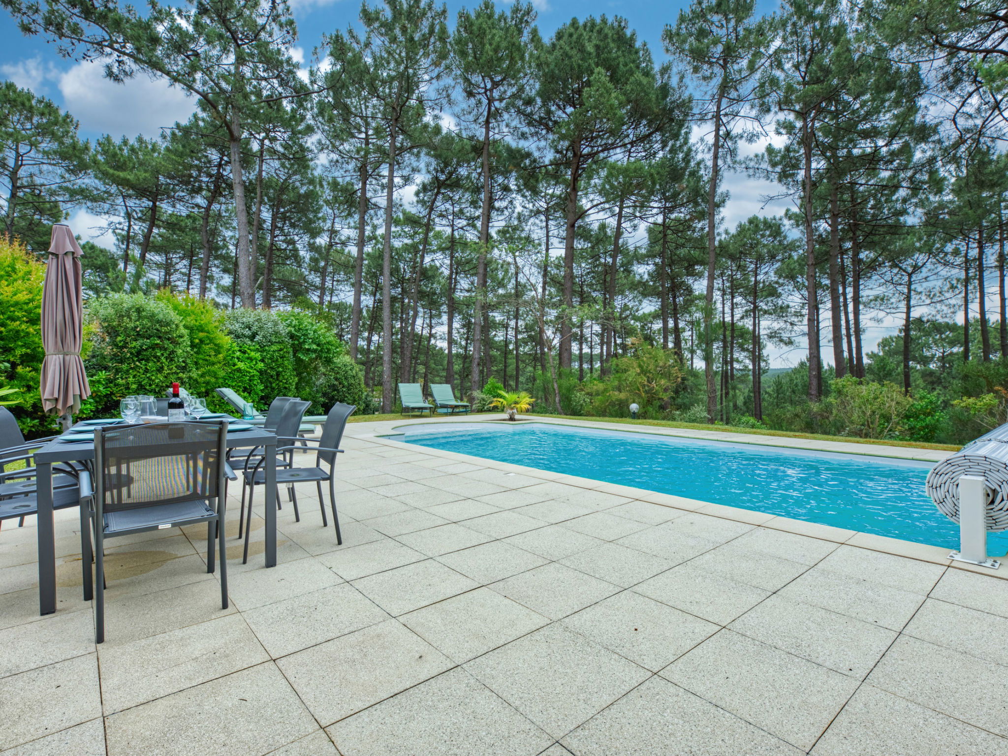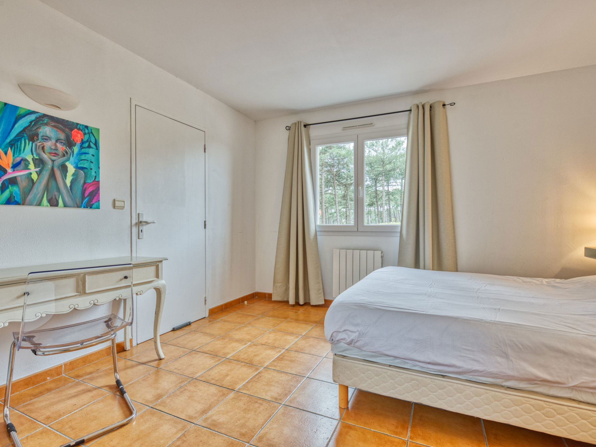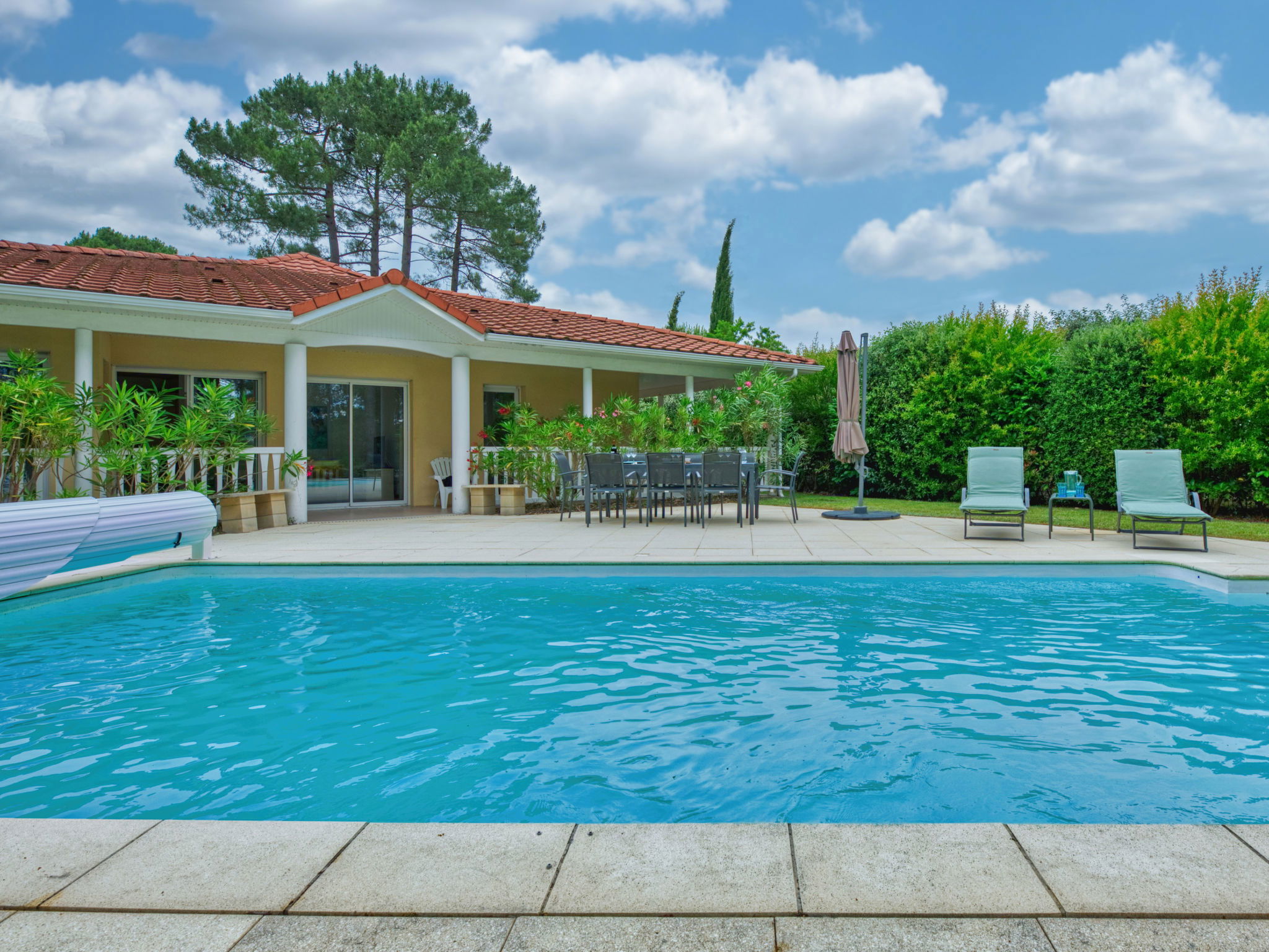 Single-family house "Eden Parc". Outside the resort, 2.5 km from the centre, 3 km from the lake. Private: garden 300 m2 (fenced), swimming pool (8 x 4 m, seasonal availability: 01.Jun. - 30.Sep.) with alarm system. Parking on the premises. Shop 2.5 km, grocery 2.5 km, supermarket 4 km, restaurant 250 m, bus stop "Le Huga" 3.2 km, sandy beach 2.5 km. Golf course (18 hole) 500 m, tennis, indoor tennis centre 750 m, riding stable 15 km. Nearby attractions: Parcours Aventure 1 km, Dune du Pilat 60 km, Bordeaux 60 km, Saint-Emilion 60 km. Well-known lakes can easily be reached: Lac du Moutchic 3 km, Maubuisson 15 km.