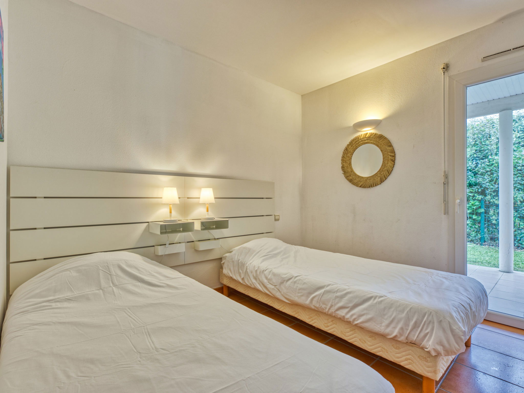 4-room villa 95 m2. Comfortable furnishings: living/dining room with TV (flat screen). Exit to the swimming pool. 1 room with 1 french bed (160 cm, length 200 cm). 1 room with 2 beds (80 cm, length 200 cm). 1 room with 2 beds (90 cm, length 200 cm). Kitchen (oven, dishwasher, 4 ceramic glass hob hotplates, toaster, kettle, microwave, electric coffee machine). Bath/shower, shower, 2 sep. WC's. Heating. Terrace 60 m2, roofed, south facing position and, east facing position terrace 50 m2, south facing position and, east facing position. Terrace furniture, deck chairs (6). View of the swimming pool, the garden and the forest. Facilities: washing machine, dryer. Internet (WiFi, free). Parking (fenced). Please note: non-smokers only. Maximum 1 pet/ dog allowed. Smoke alarm. Offer by a private individual according to Art. 155, IV of CGI.