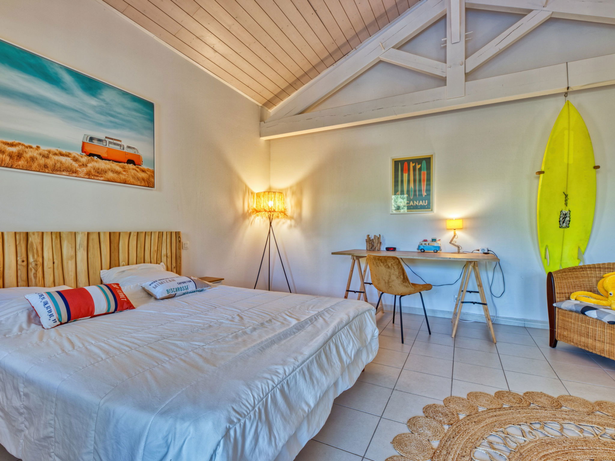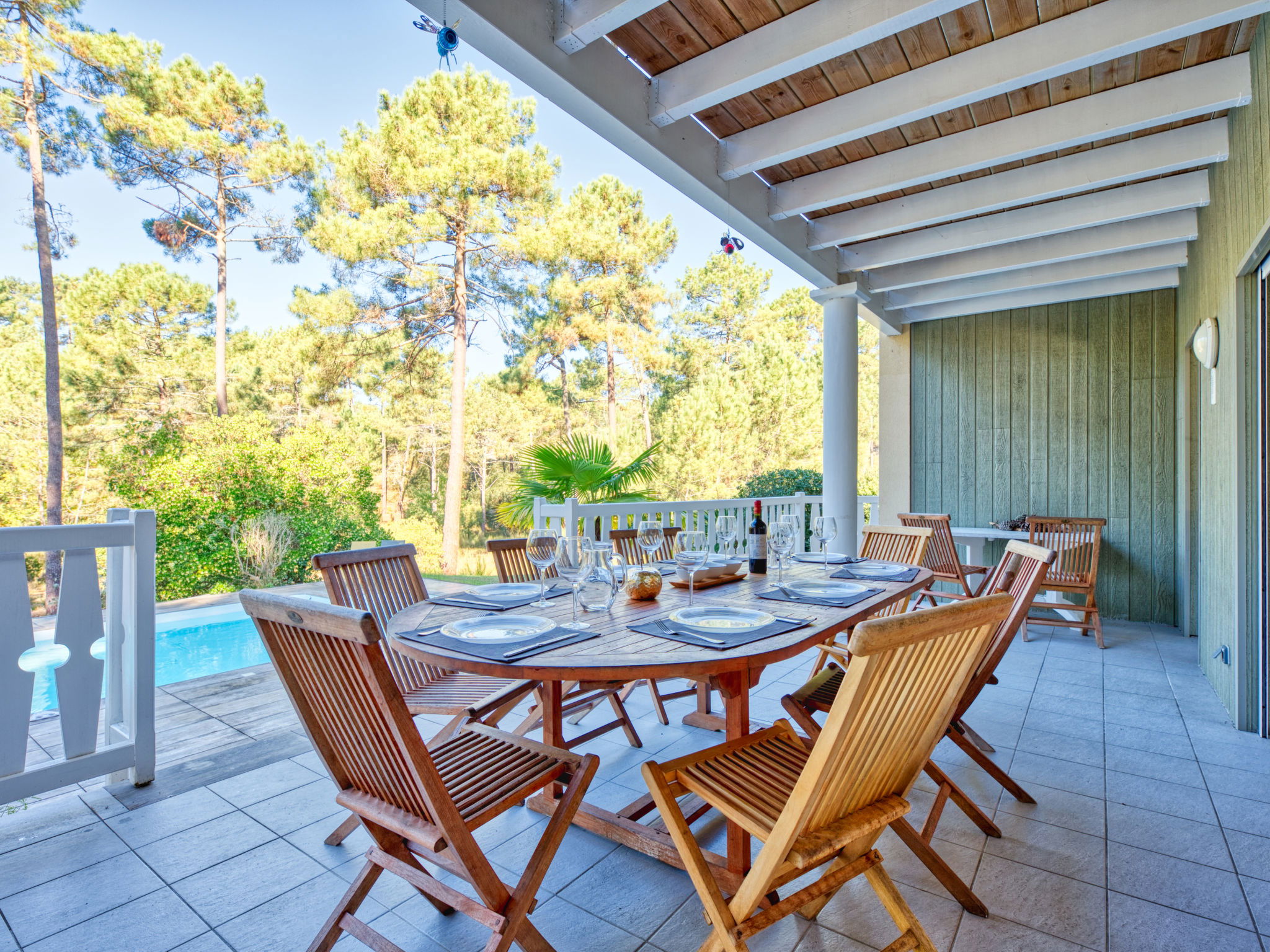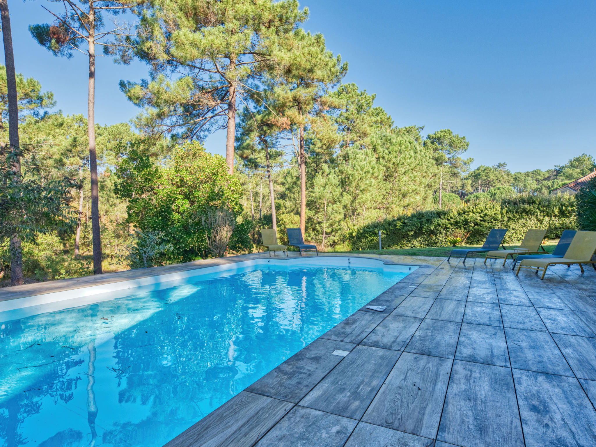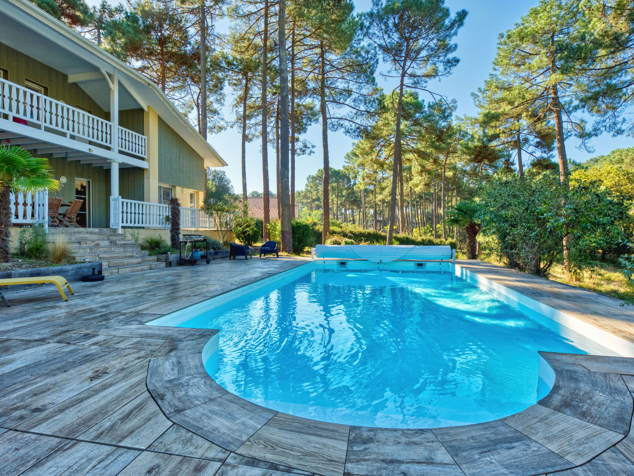 Beautiful residence "Atlantic Green", surrounded by trees. On the outskirts, 4 km from the centre of Lacanau Océan, 4 km from the sea, 5 km from the lake, 4 km from the beach. Private: natural state property 2'200 m2 (fenced), swimming pool heated (10 x 5 m, depth 180 cm, seasonal availability: 15.Jun. - 15.Sep.) with alarm system. Terrace, garden furniture, roofed, parking. Supermarket 4 km, restaurant 4 km, bar 4 km, bicycle rental 2 km, bus stop "Marie Curie" 3 km. Golf course (18 hole) 2 km, tennis 2 km. Nearby attractions: Bordeaux 60 km, Arcachon 60 km, Saint Emilion 90 km, Dune du pyla 70 km. Residence with electric gates. The keys‘ handover takes place by the agency in Lacanau Océan, 4 km.