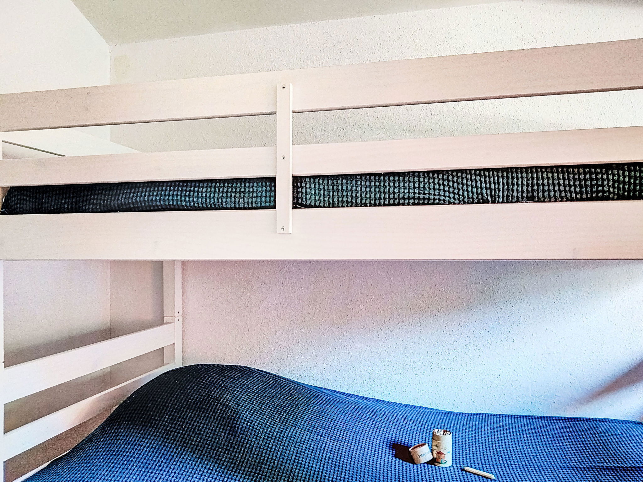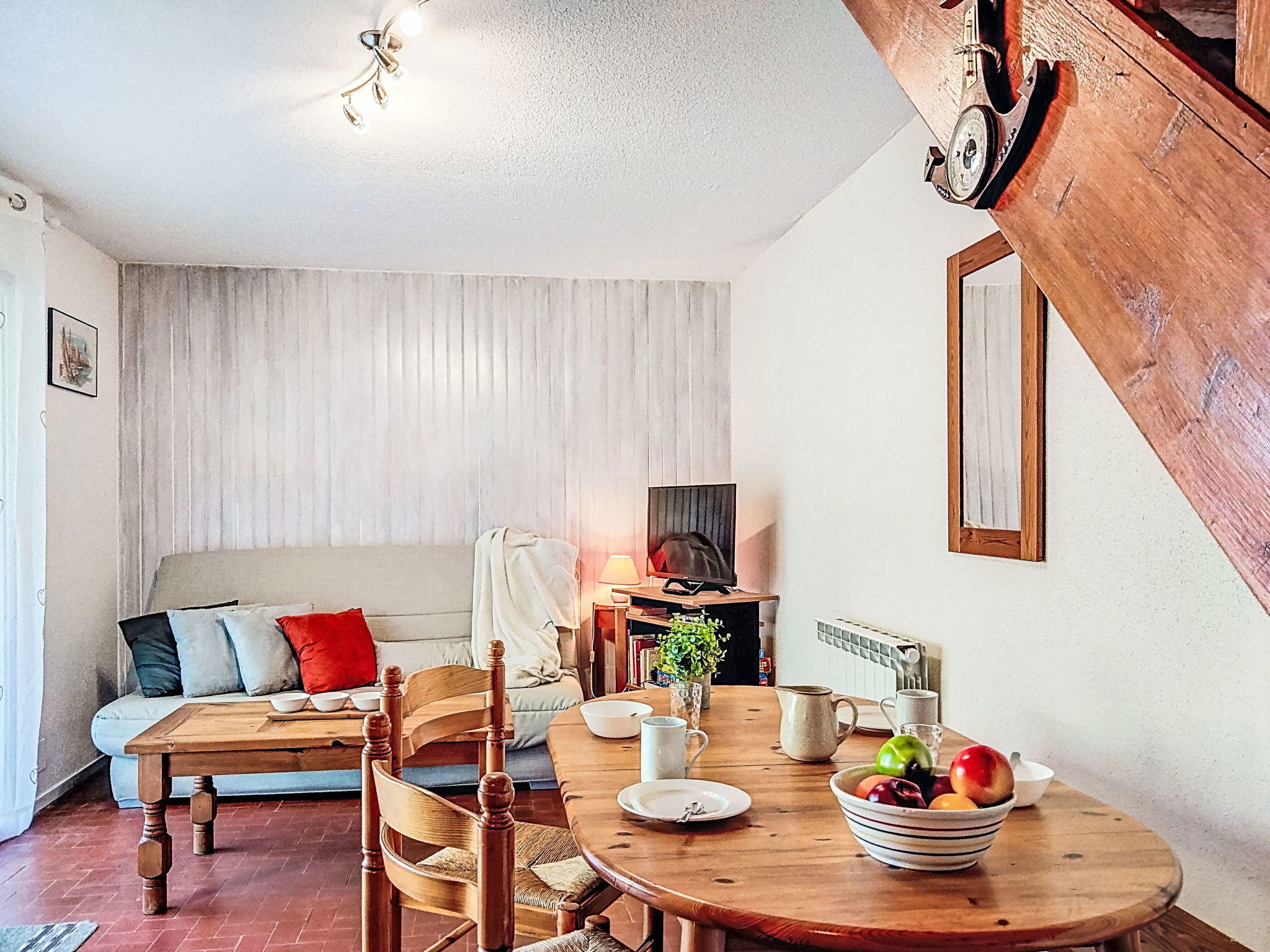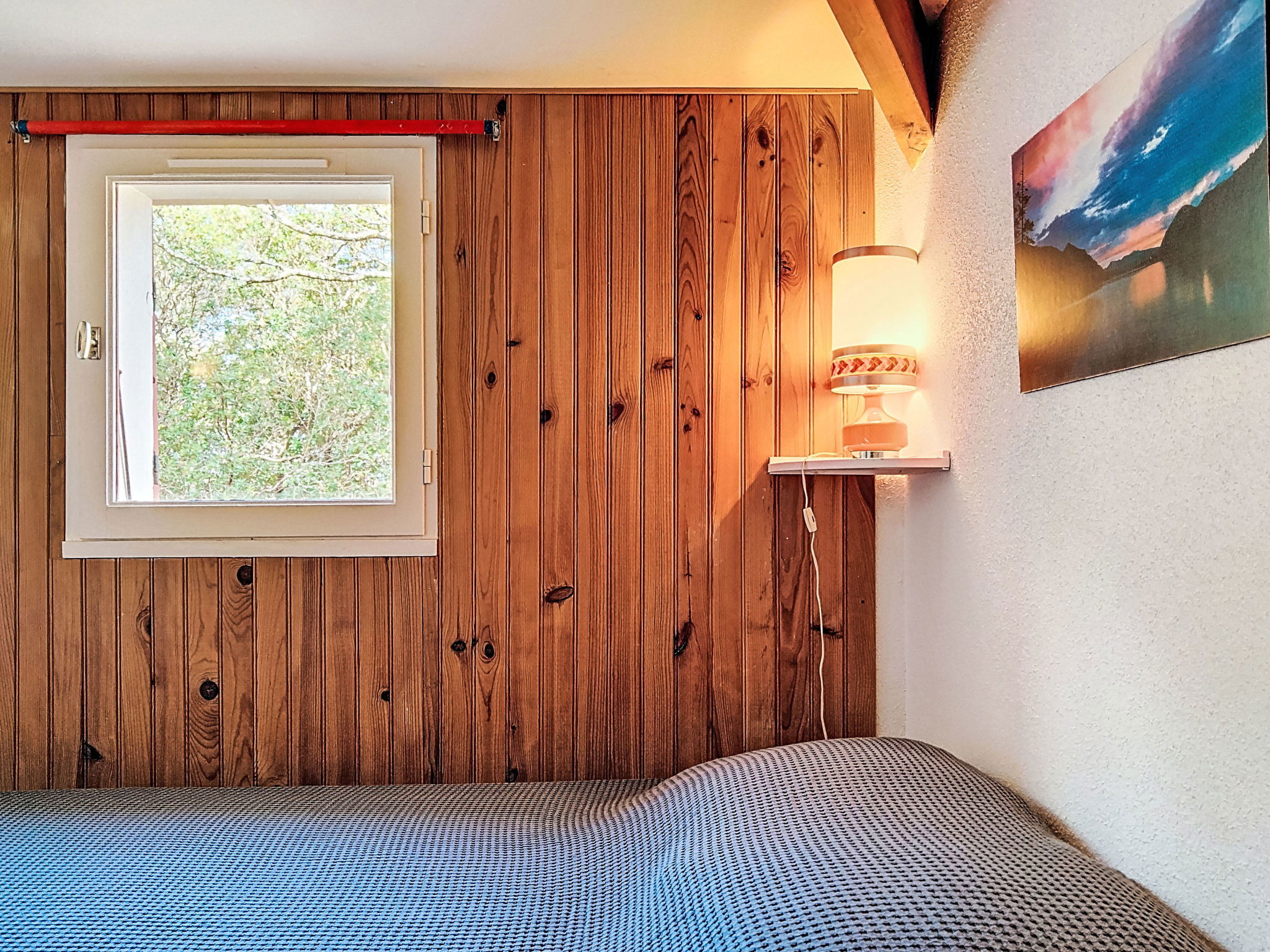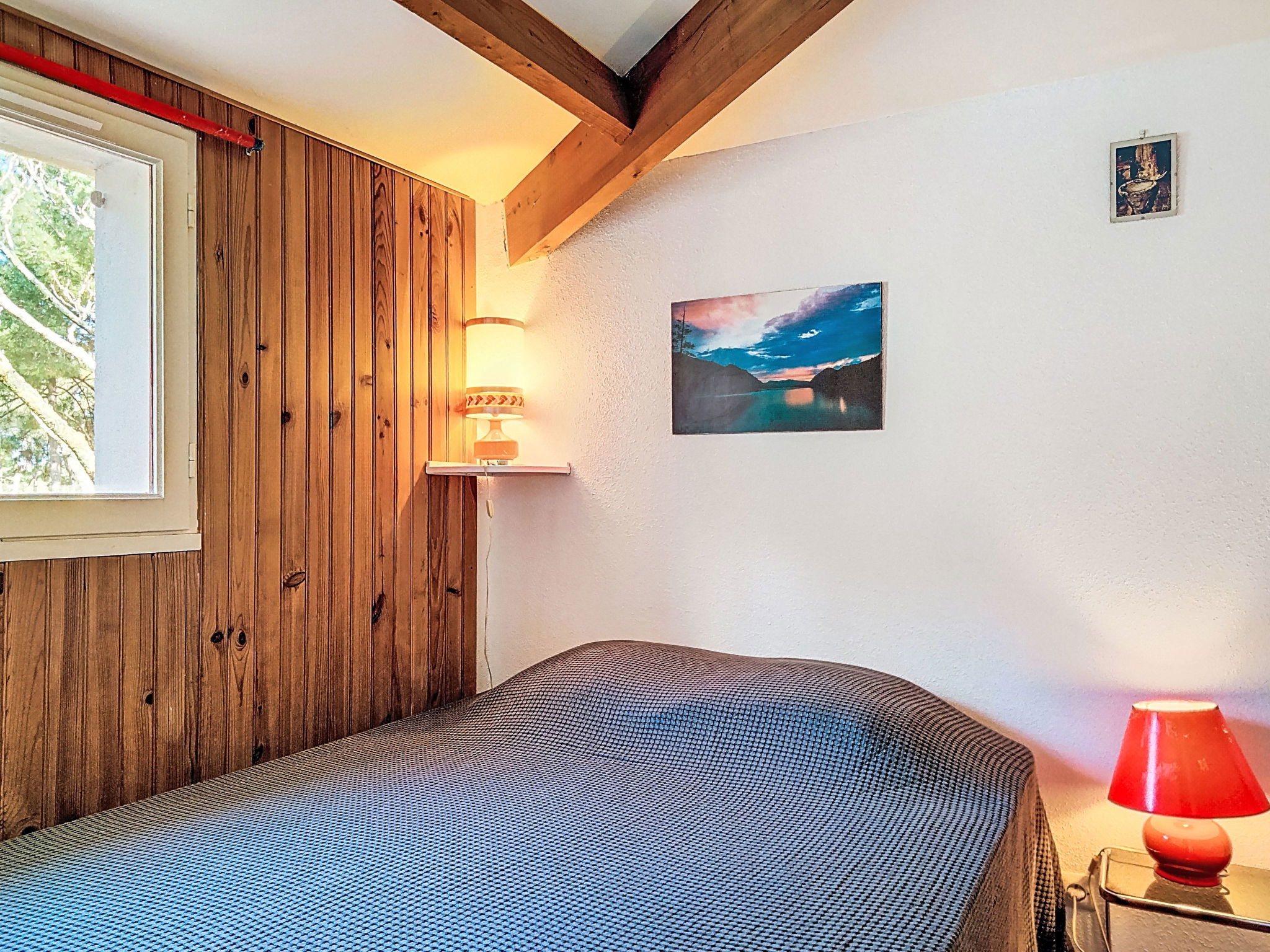 3-room semi-detached house 44 m2. Living/dining room with 1 double sofabed (1 x 140 cm, length 200 cm), TV (flat screen). Exit to the garden, to the terrace. Kitchen-/living room 6 m2 (2 hot plates, mini-oven, dishwasher, microwave, electric coffee machine) with dining table. Upper floor: 1 room with 1 double bed (1 x 140 cm, length 200 cm). 1 room with 1 x 2 bunk beds (90 cm, length 190 cm). Bath/WC. Electric heating. Terrace 20 m2, west facing position, patio 15 m2, west facing position. Terrace furniture. Partial view of the forest. Facilities: washing machine, hair dryer. Internet (WiFi, extra). Parking space n 99 (1 car) at 50 m. Please note: smoke alarm. Offer by a private individual according to Art. 155, IV of CGI.