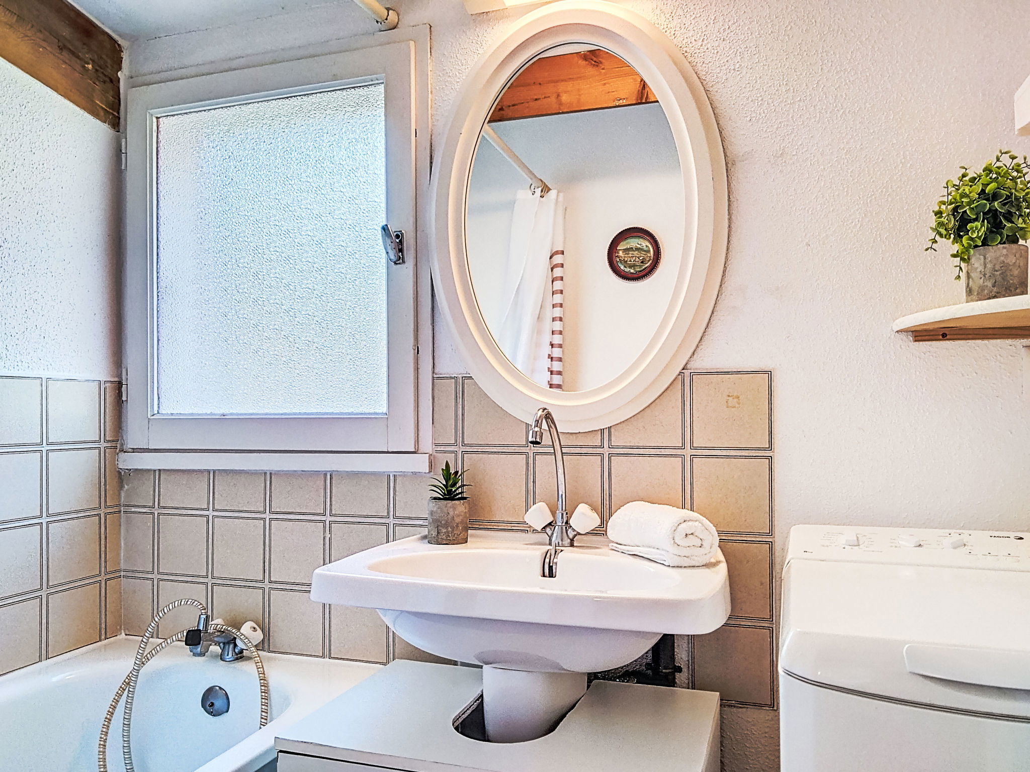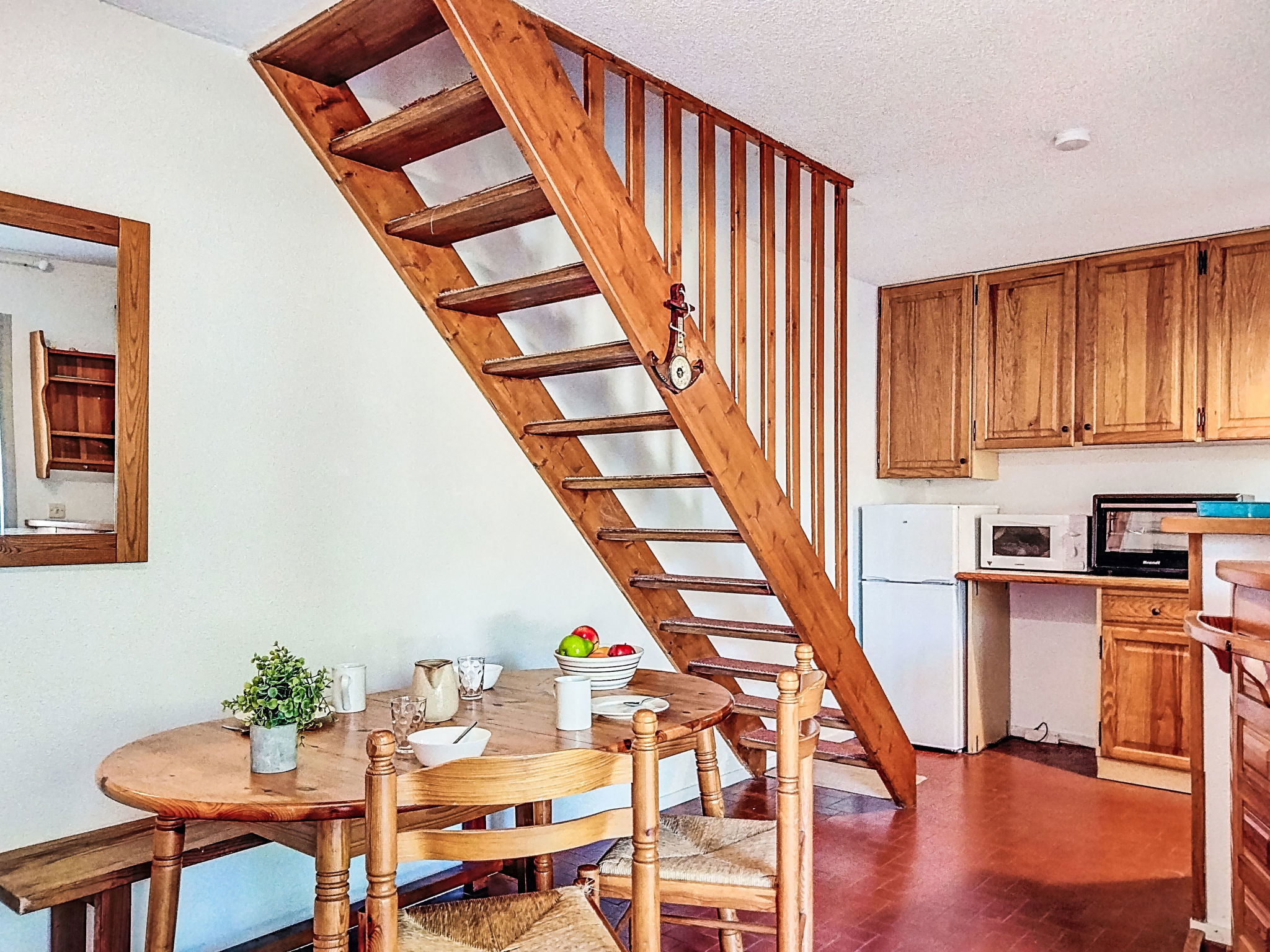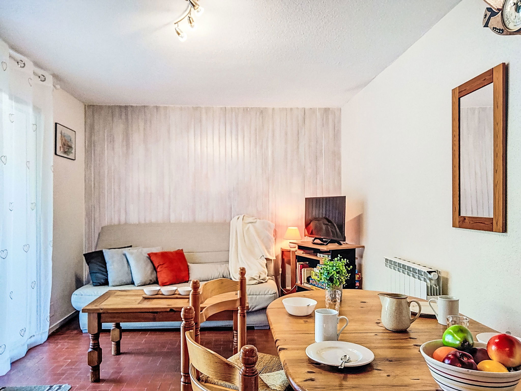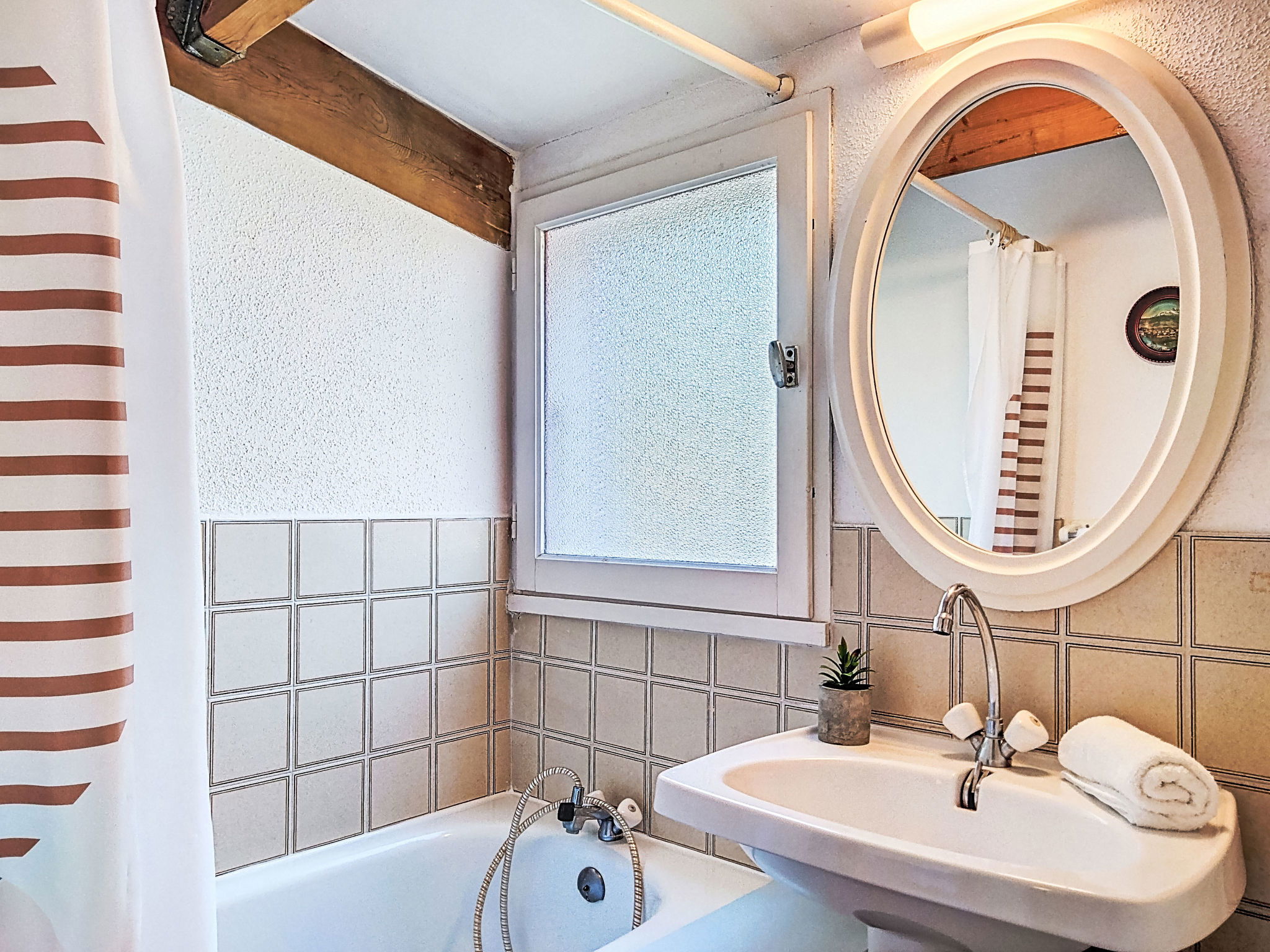 3-room semi-detached house 44 m2. Living/dining room with 1 double sofabed (1 x 140 cm, length 200 cm), TV (flat screen). Exit to the garden, to the terrace. Kitchen-/living room 6 m2 (2 hot plates, mini-oven, dishwasher, microwave, electric coffee machine) with dining table. Upper floor: 1 room with 1 double bed (1 x 140 cm, length 200 cm). 1 room with 1 x 2 bunk beds (90 cm, length 190 cm). Bath/WC. Electric heating. Terrace 20 m2, west facing position, patio 15 m2, west facing position. Terrace furniture. Partial view of the forest. Facilities: washing machine, hair dryer. Internet (WiFi, extra). Parking space n 99 (1 car) at 50 m. Please note: smoke alarm. Offer by a private individual according to Art. 155, IV of CGI.