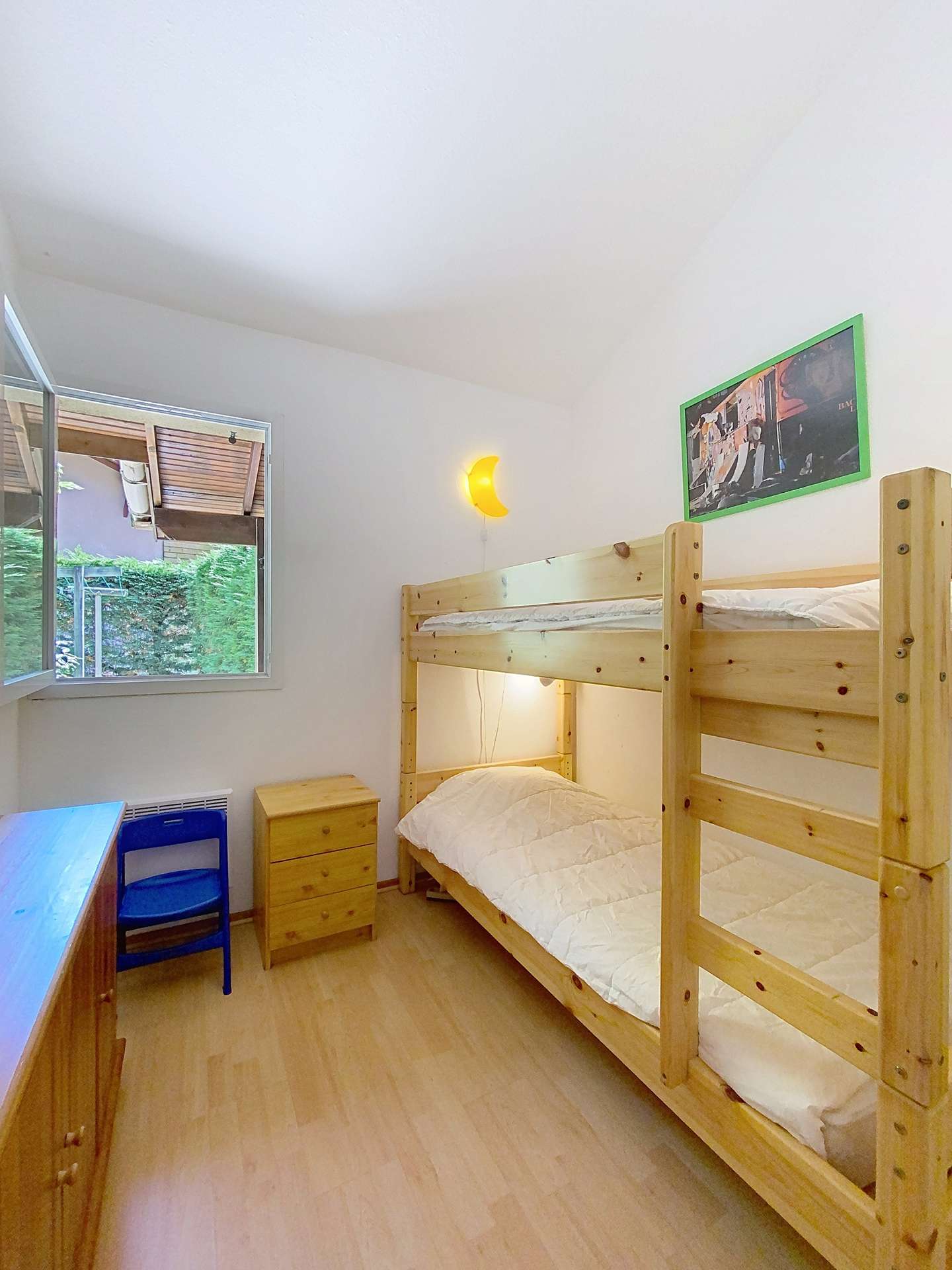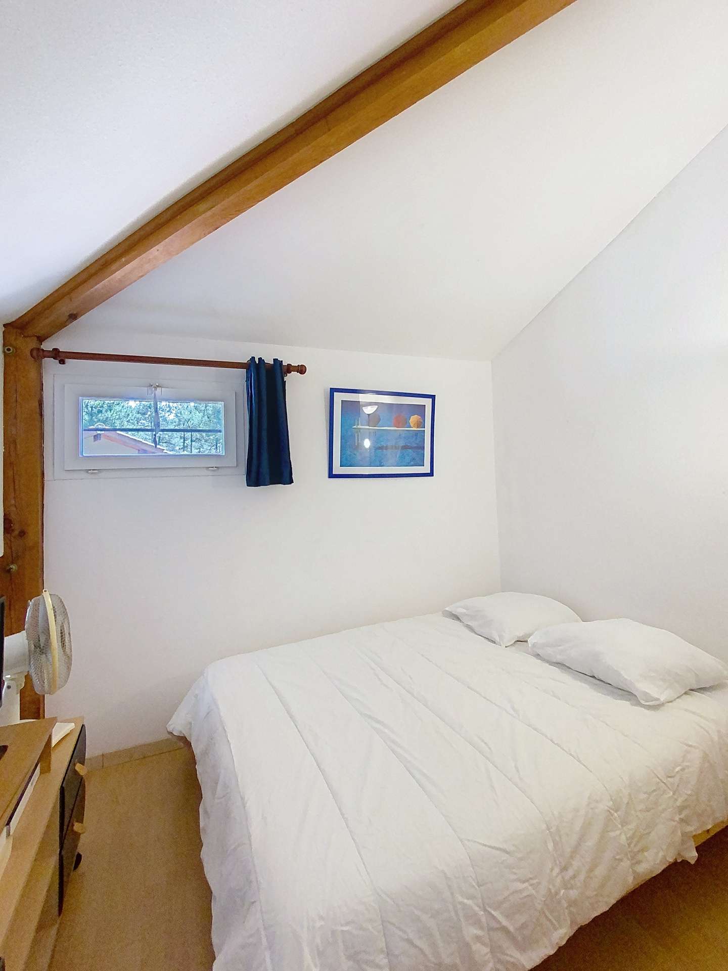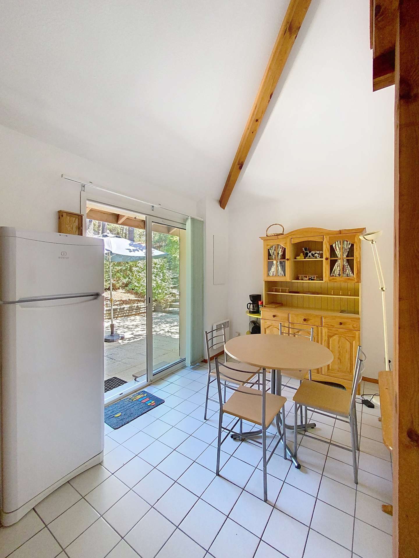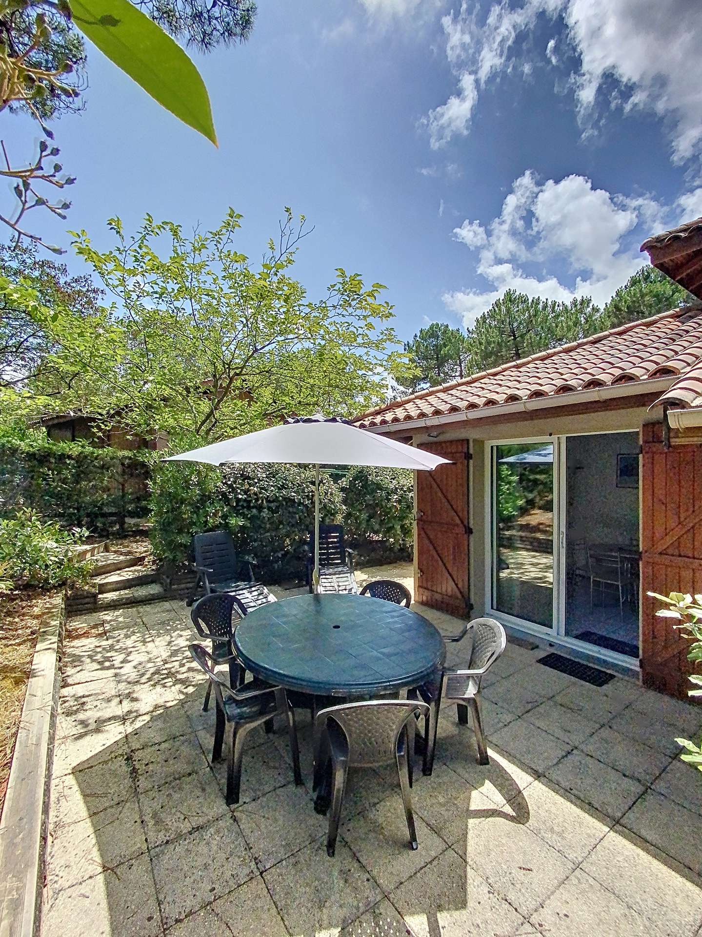 Pedestrian residence with swimming pool (2 pools, open from 15 June to 15 September) "Les Jardins de l'Océan" located in the southern sector of Lacanau (pipeyrous), near the pine forest, golf courses and tennis courts. The access to the beach is easy by the cycle track or the pedestrian paths. This semi-detached house, 32m², recently built, for 4 people, includes a main room serving as a living/dining room, opening onto the terrace and fenced garden. This room is equipped with a kitchenette. The bedroom on the garden level is equipped with bunk beds and the mezzanine, under the slope, is open to the living room with a double bed (140cm) and a television. The sanitary facilities include a shower, washbasin and separate WC. You have a private parking space numbered at the entrance of the residence. You can reach the beach, shops, restaurants and ice-cream parlours at 2 km, the golf course at 1 km or the lake of Lacanau at 4 km (REF 01408M).